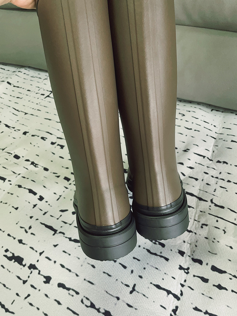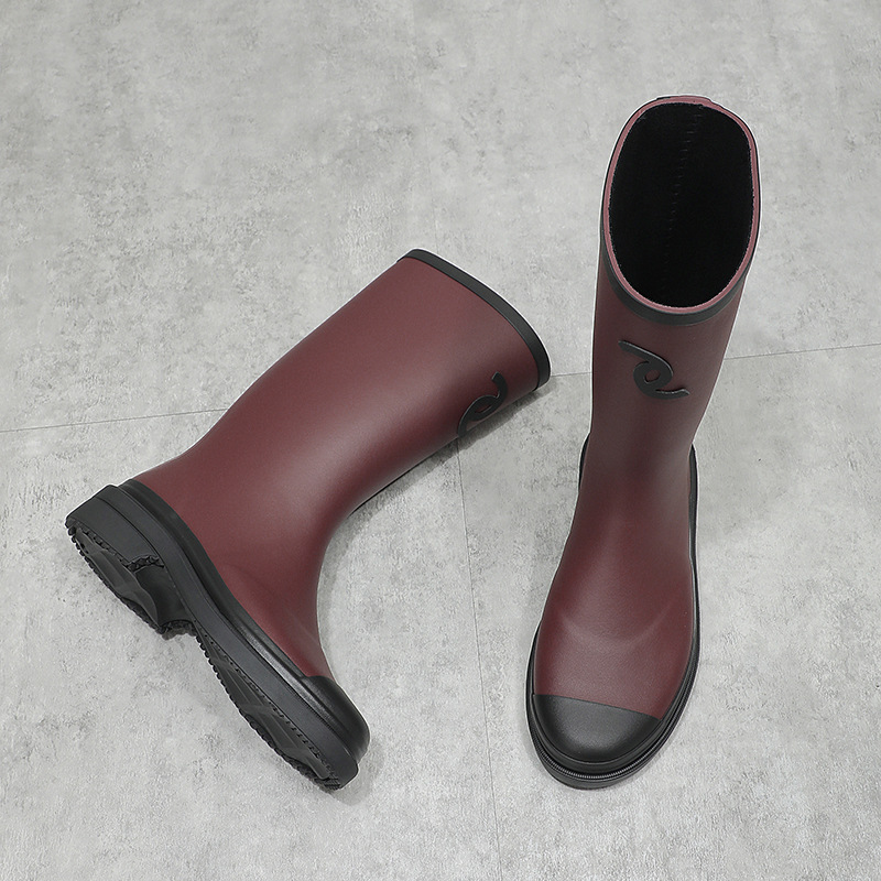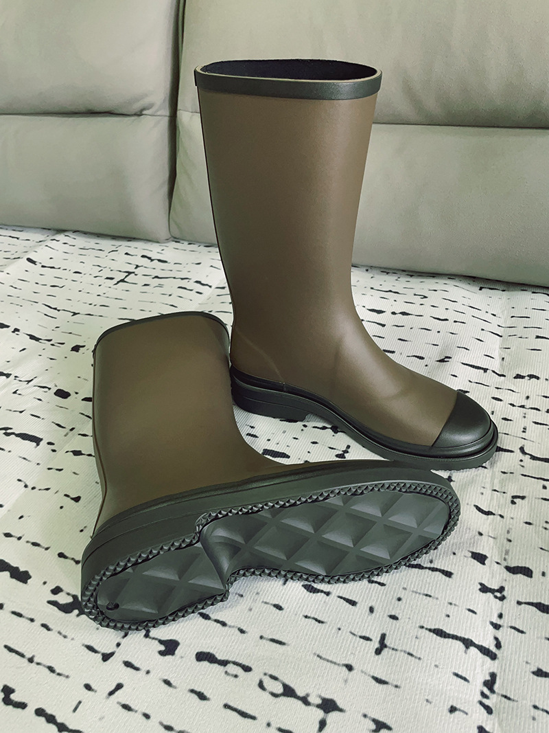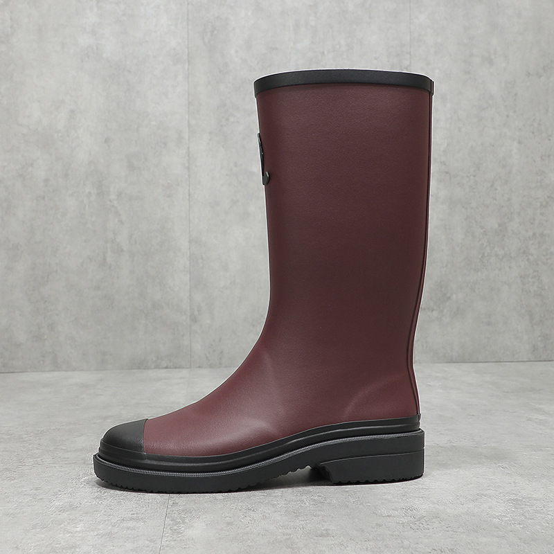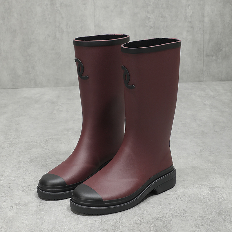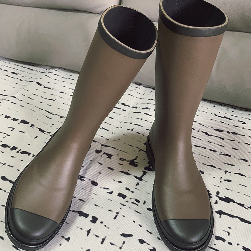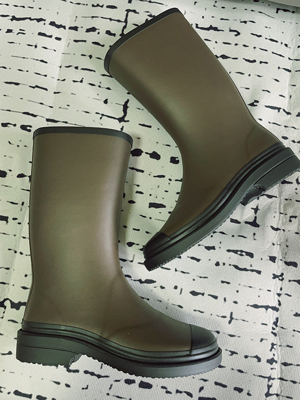 어두운 다크 브라운 방수 라운드 헤드 슬리브 여성용 컬러 블록 원활한 샤넬 스타일 고무 장화