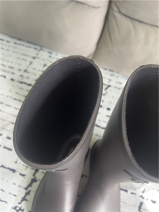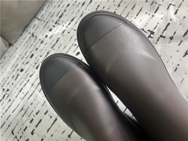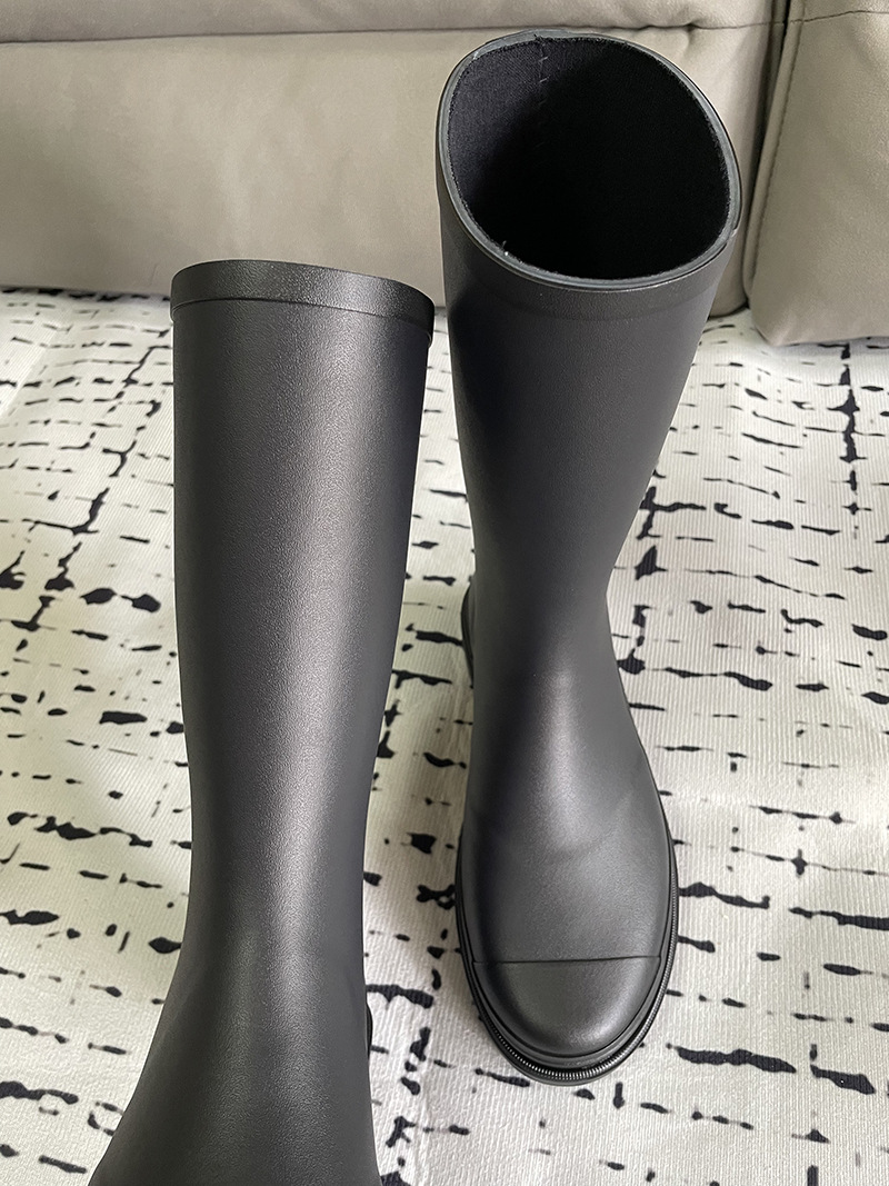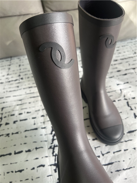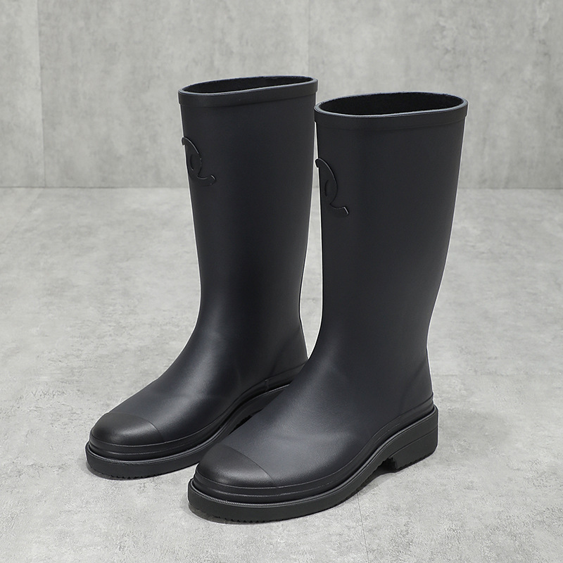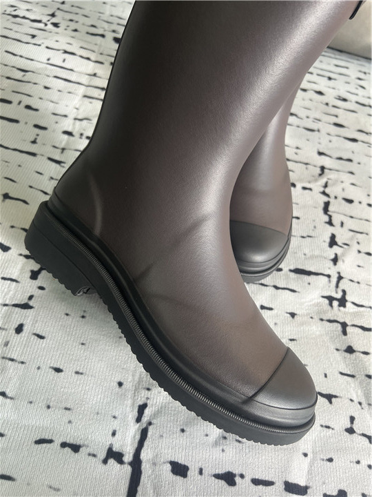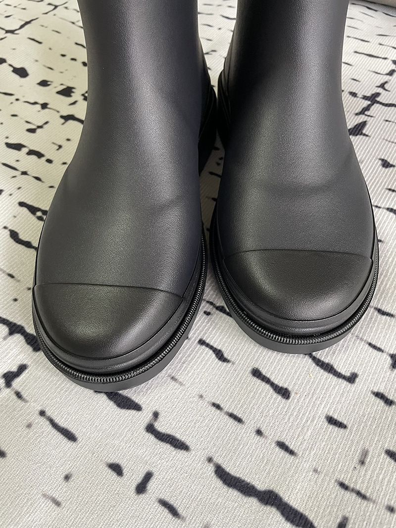 어두운 다크 브라운 방수 라운드 헤드 슬리브 여성용 컬러 블록 원활한 샤넬 스타일 고무 장화스토어 가기