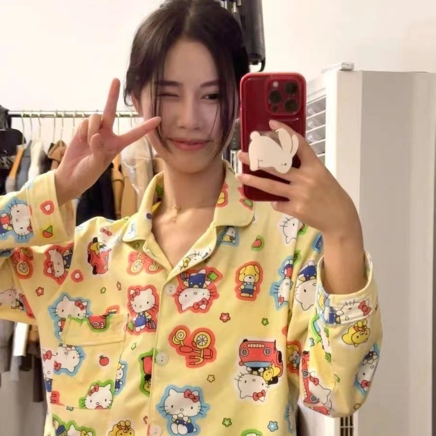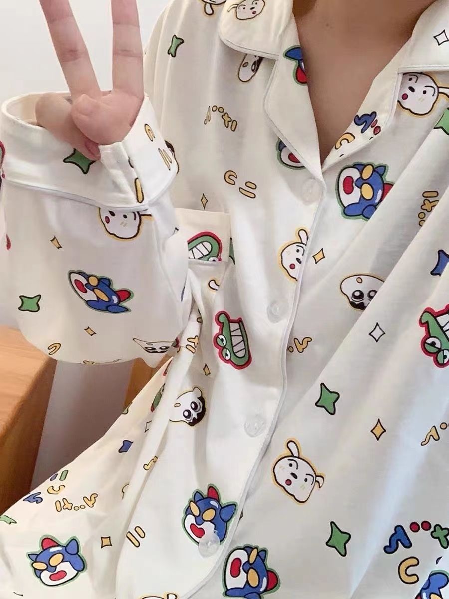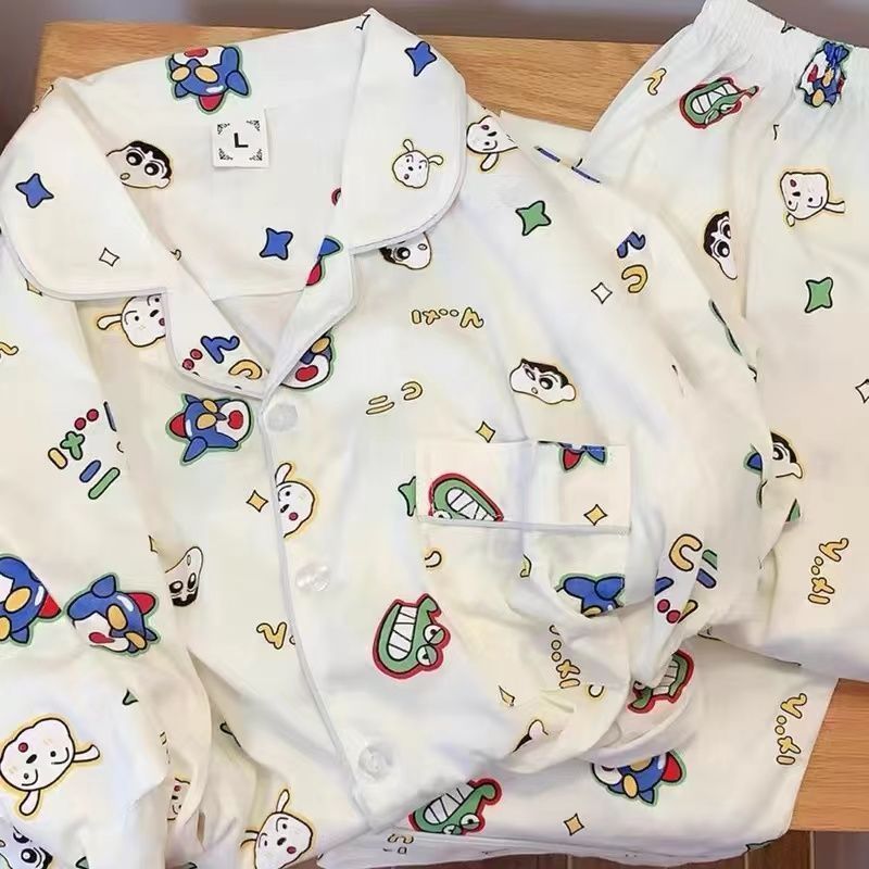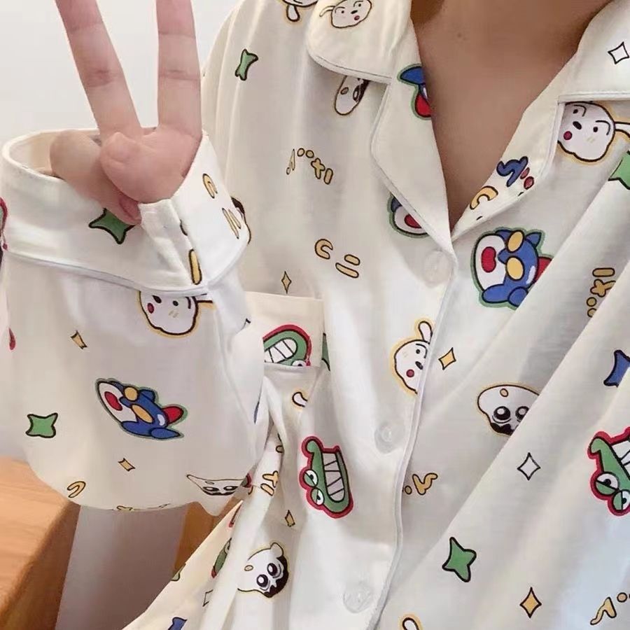 300kg 플러스 사이즈 크레용 작은 새 잠옷 가을/겨울 긴 소매 느슨한 달콤한 만화 애니메이션 학생들은 홈 옷을 입고스토어 가기