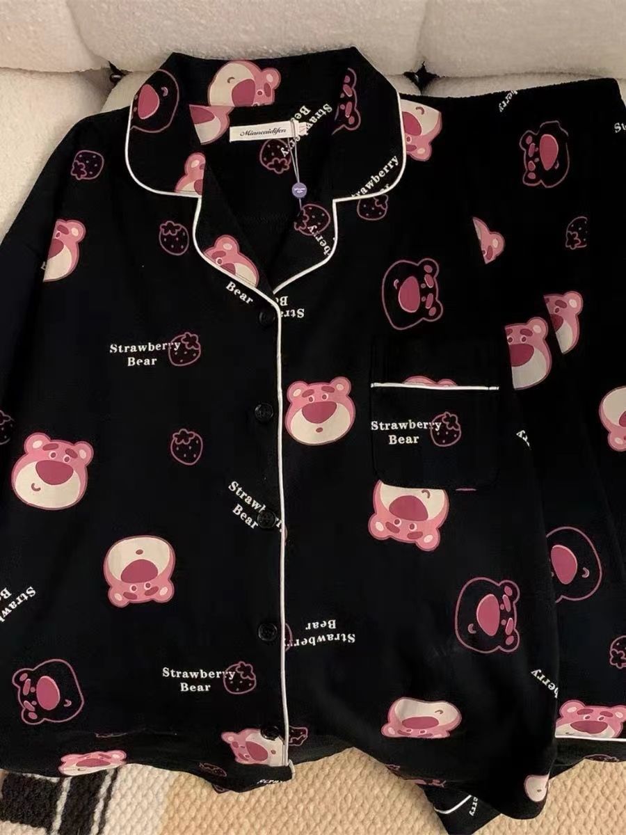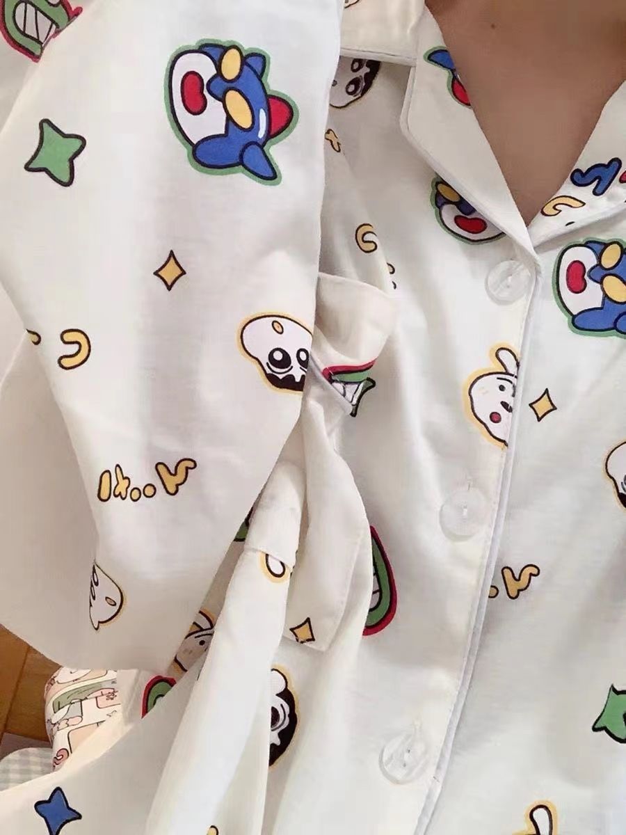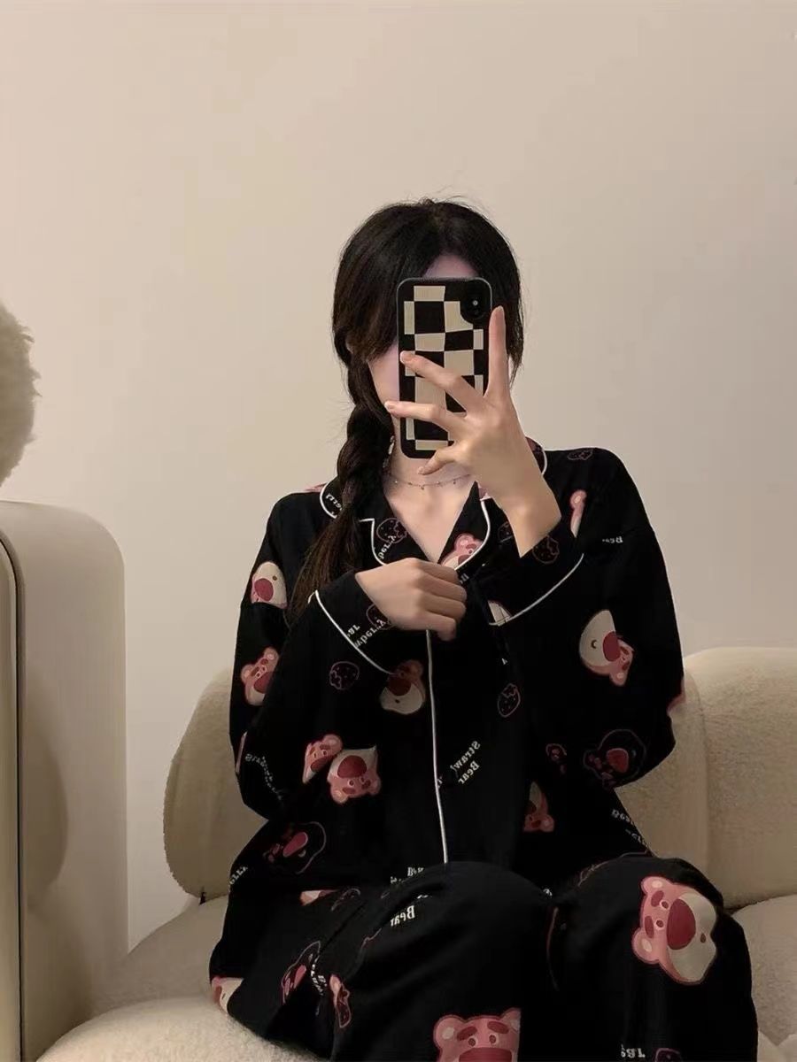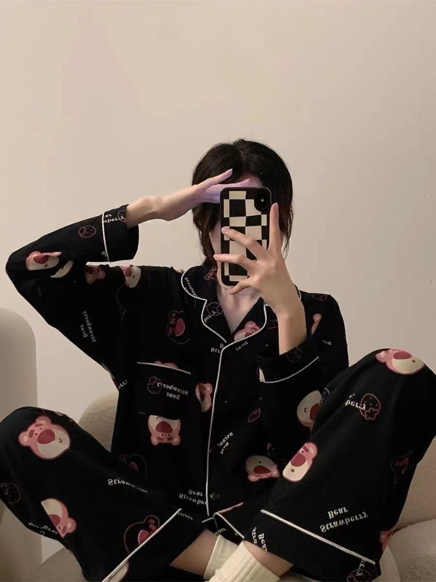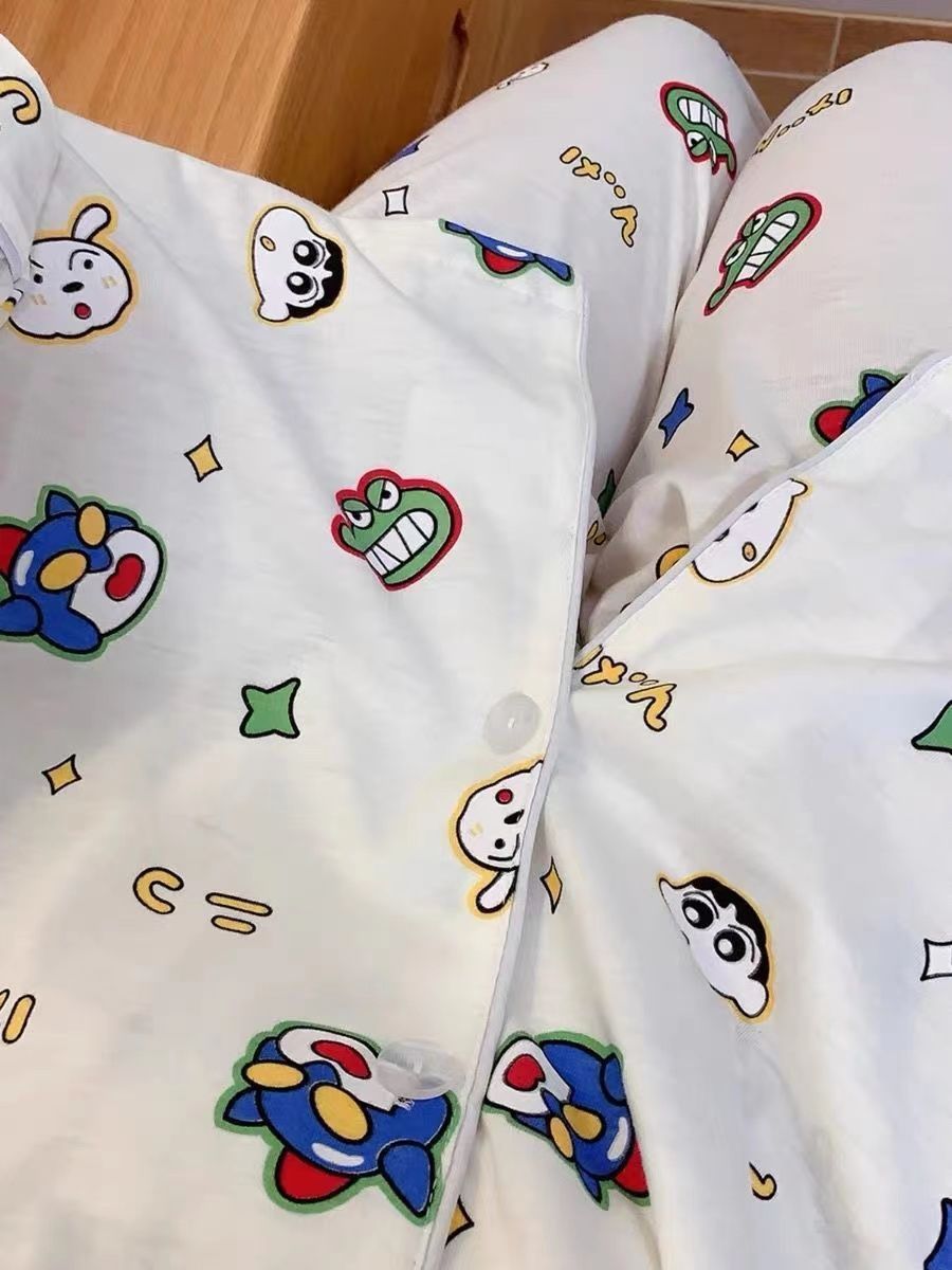 300kg 플러스 사이즈 크레용 작은 새 잠옷 가을/겨울 긴 소매 느슨한 달콤한 만화 애니메이션 학생들은 홈 옷을 입고