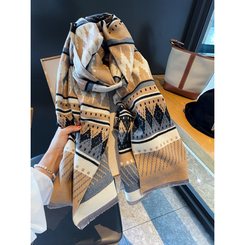가을과 겨울 여성의 두꺼운 따뜻한 양면 이중 사용 목도리를위한 Maillard 컬러 다이아몬드 캐시미어 스카프