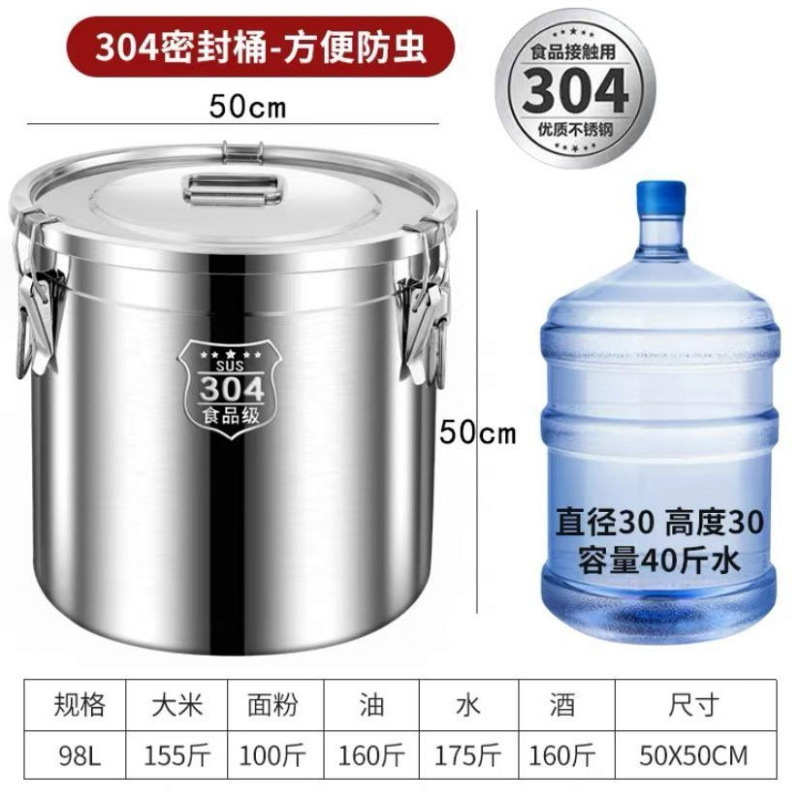 304 스테인레스 스틸 봉인 배럴 대용량 배럴 식품 등급 쌀 배럴 두꺼운 상업용 곤충 방지 수분 저장 차 냄비스토어 가기