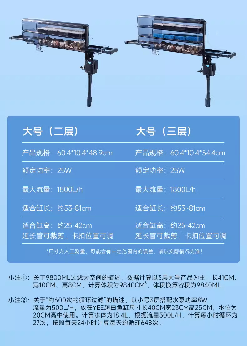 • [60cm 이상의 탱크에 적합/무료 흰색 면 추가] 2겹 25W 1800L