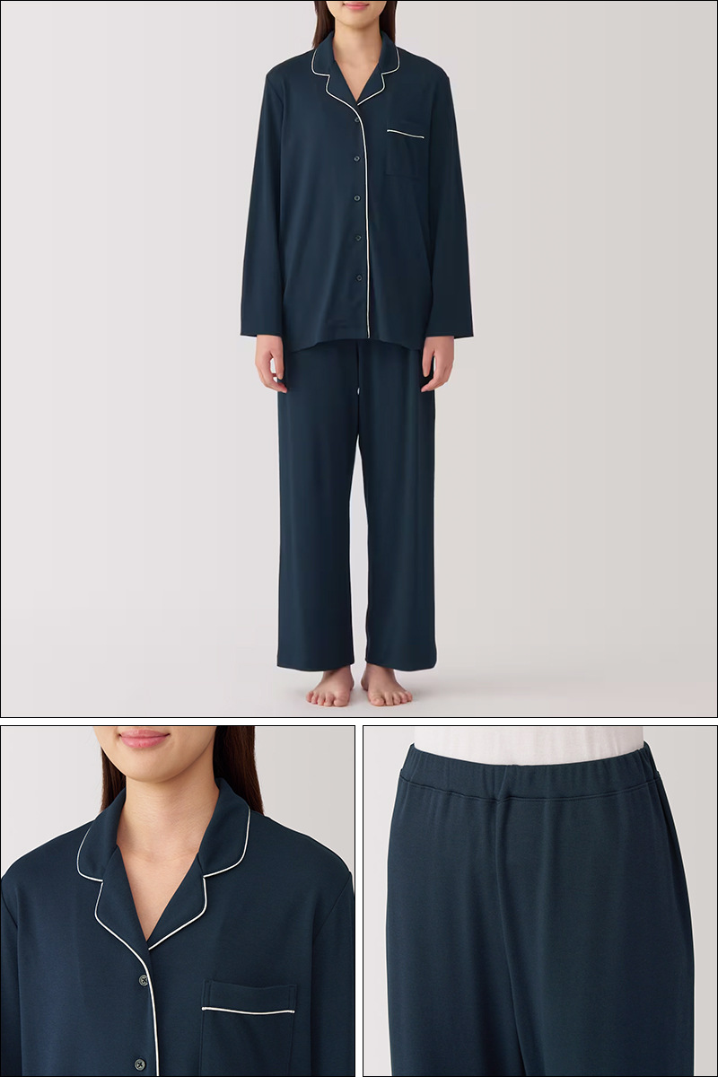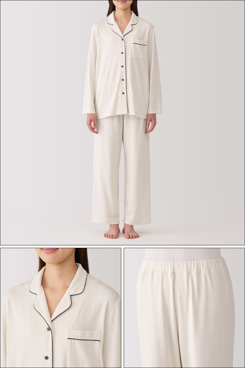 MUJI 일본식 좋은 코튼 블렌드 모달 파자마 여성 Non Side Seam Long Sleeve 홈 의류 남성 커플 세트스토어 가기
