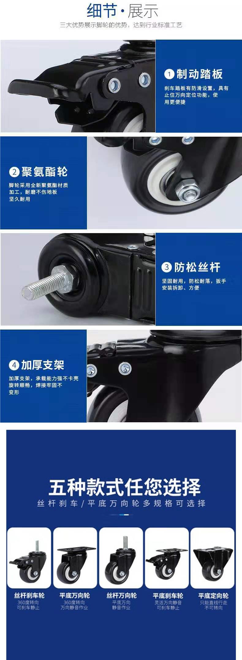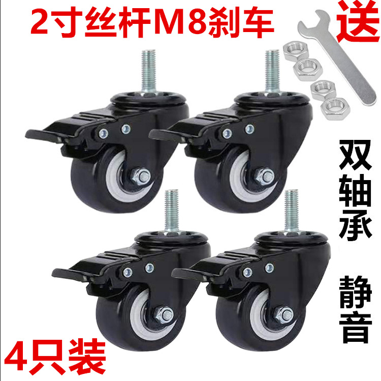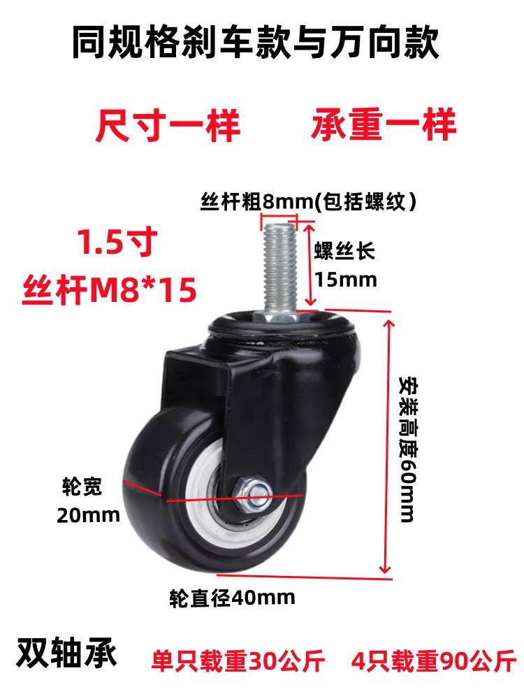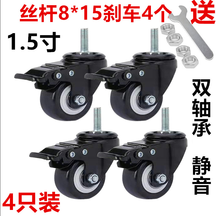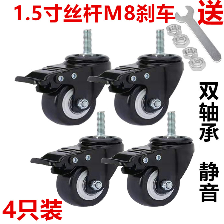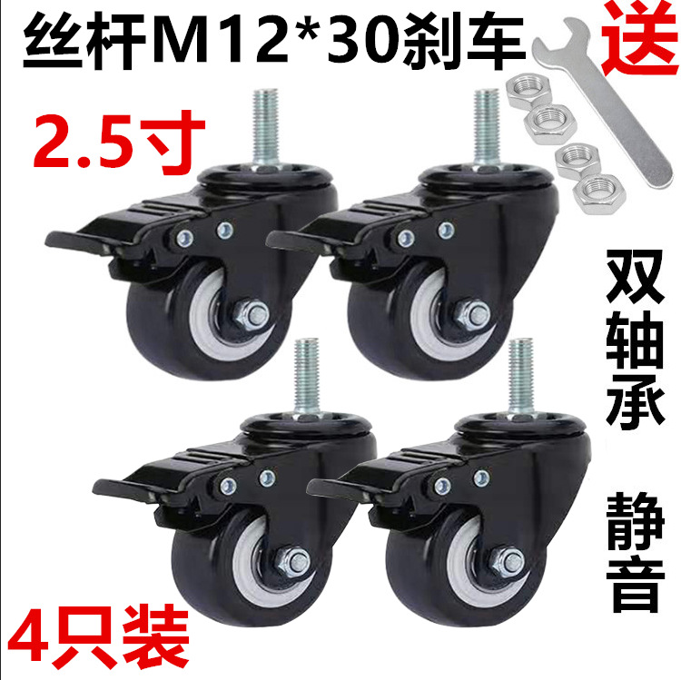 1.5-3 인치 카트 캐스터 유니버설 휠 침묵 스크류 M8M10M12 더블 베어링 브레이크 선반 개 케이지