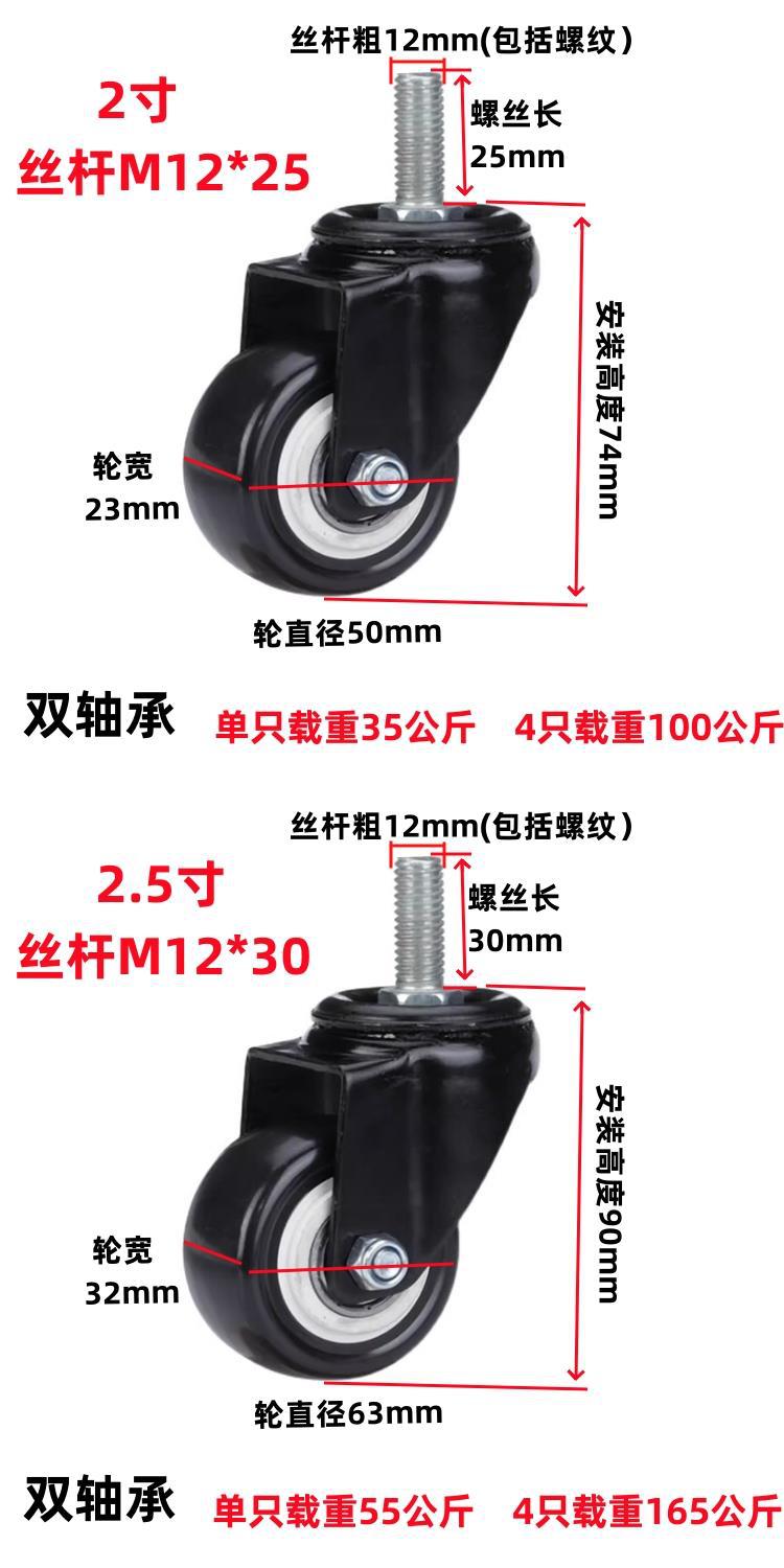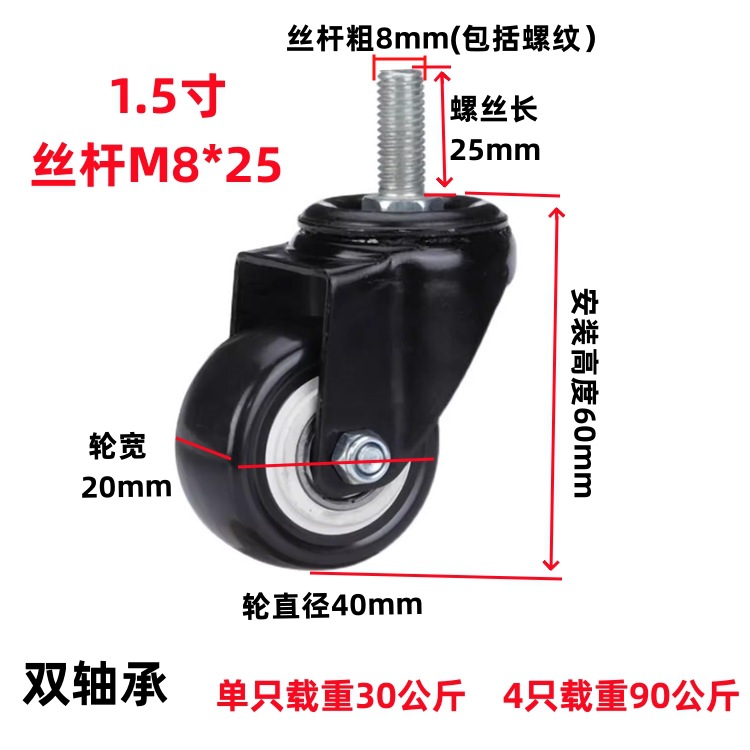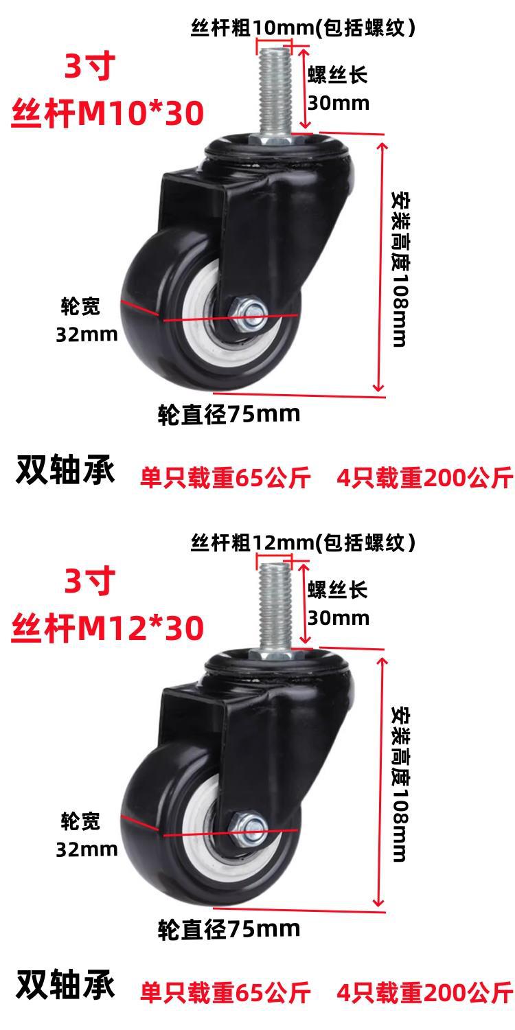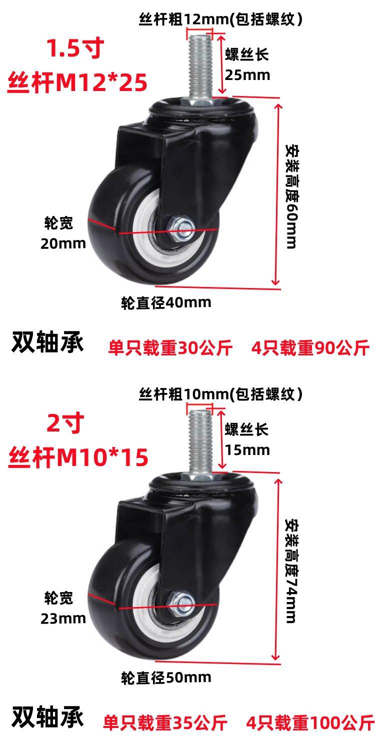 1.5-3 인치 카트 캐스터 유니버설 휠 침묵 스크류 M8M10M12 더블 베어링 브레이크 선반 개 케이지