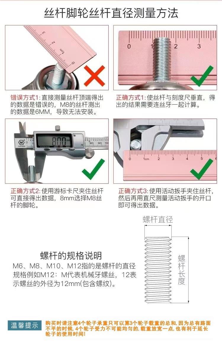 • 1.5inch 골드 드릴 나사 M8* 250k 방향 휠 1개(렌치 제외)