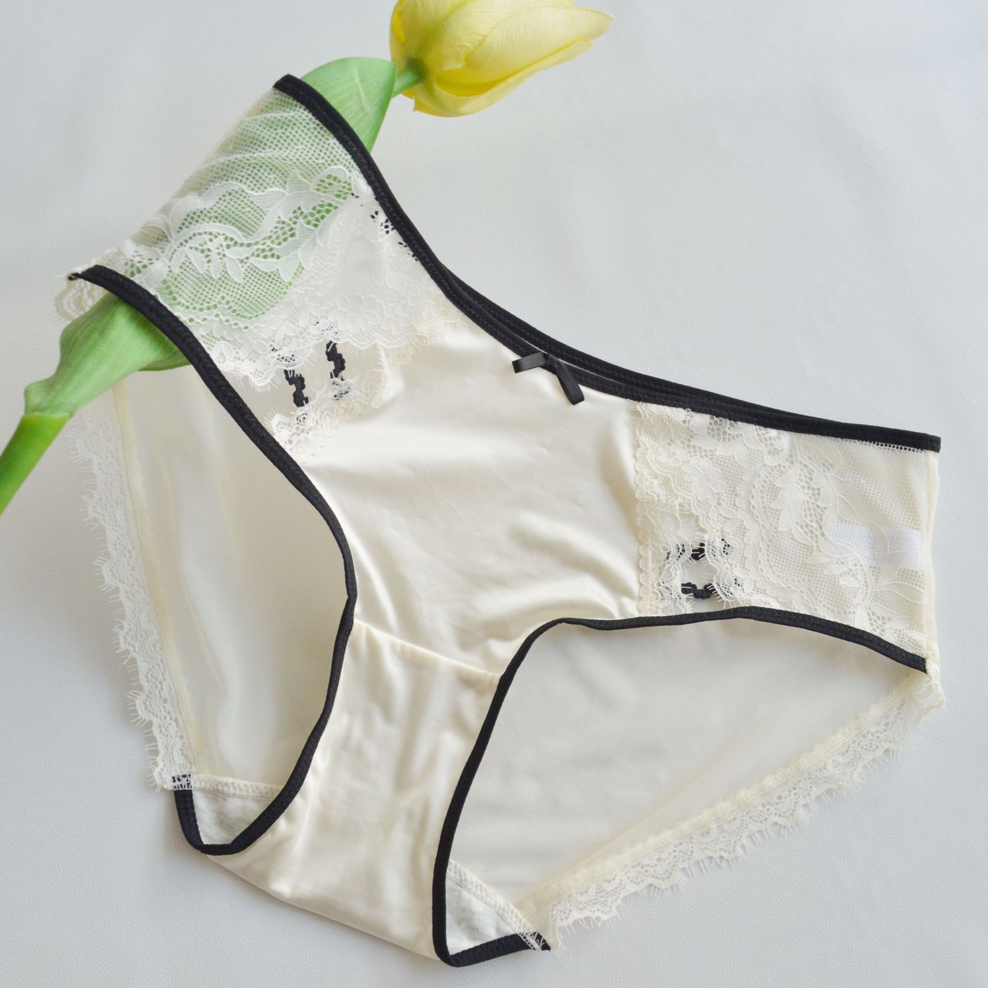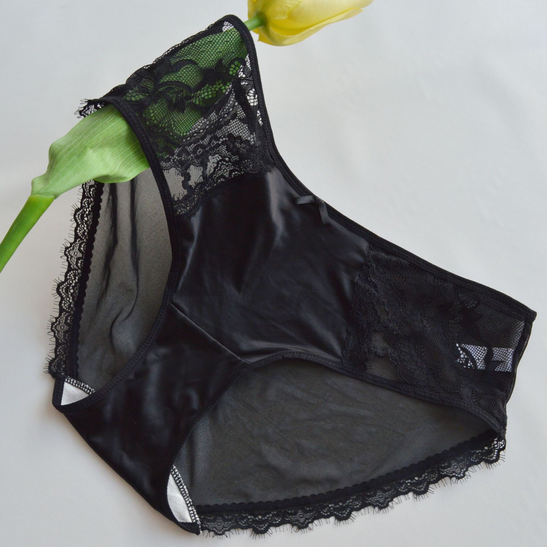 맑은 메쉬 대조 속눈썹 레이스 속옷 중간 허리 편안한 통기성 섹시한 여성 브리프 중간 허리 편안한 여성