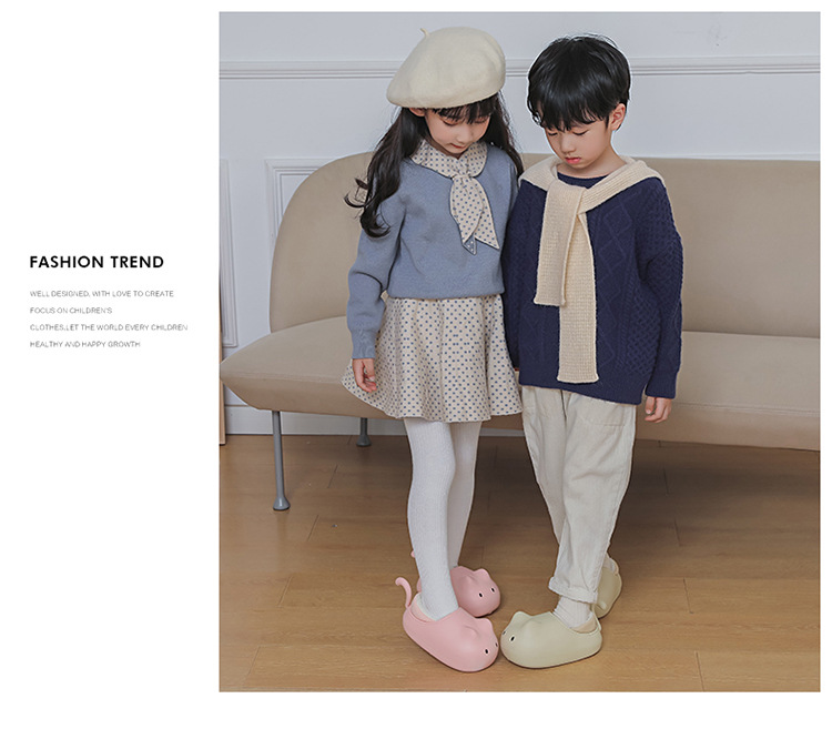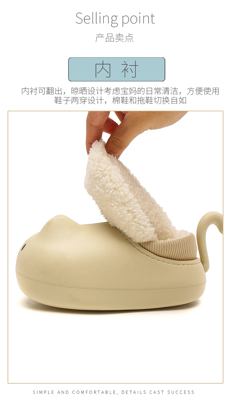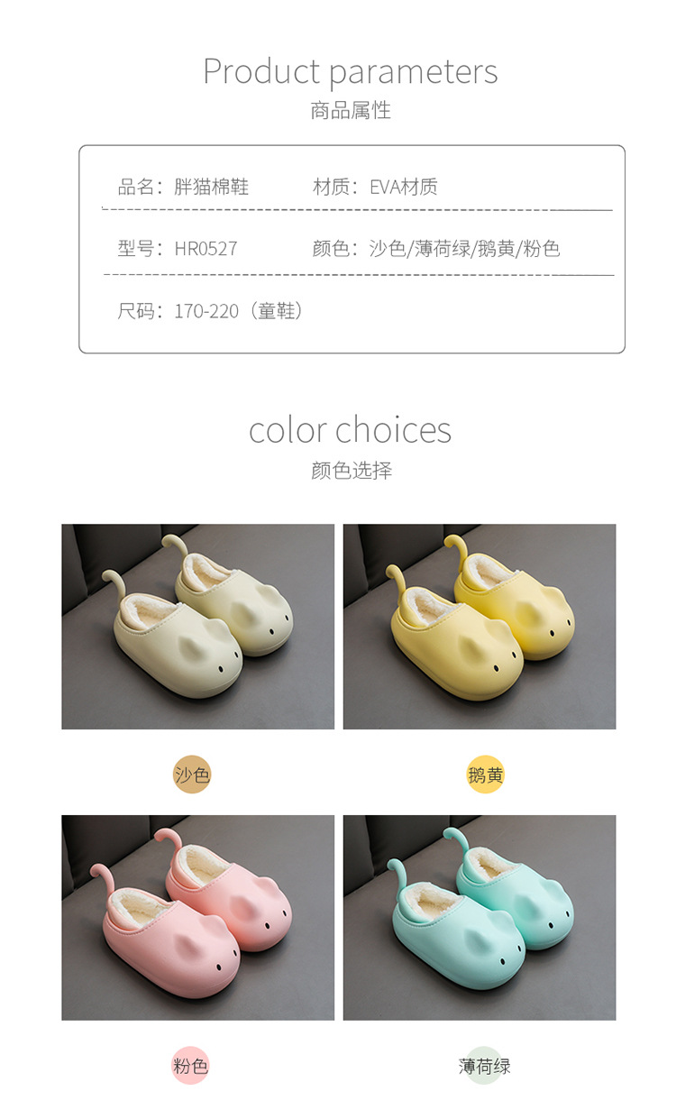 만화 귀여운 고양이 기모 면 따뜻한 국경 가을과 겨울 새로운 어린이 코튼 신발 두꺼운 단독 미끄럼 방지 홈 웨어스토어 가기