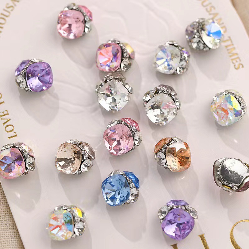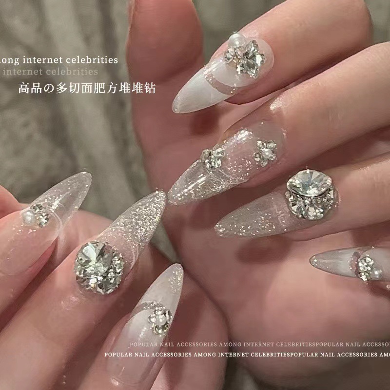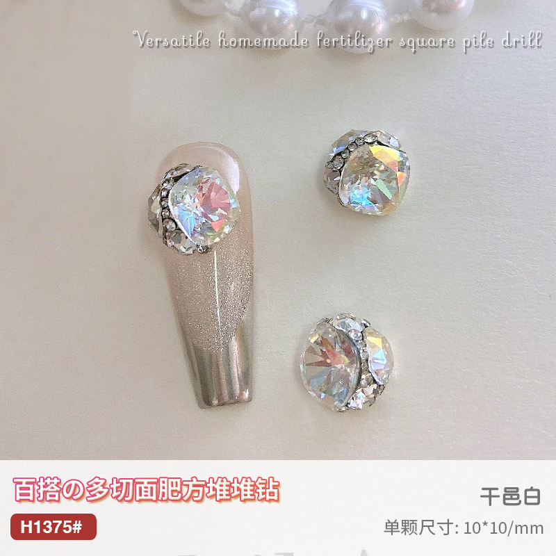 그물 축하 폭발성 매니큐어 팻 스퀘어 파일 드릴 수제 완성 된 드릴 볼 하이 퀄리티 크리스탈 빅 드릴 네일 장식 스티커 드릴