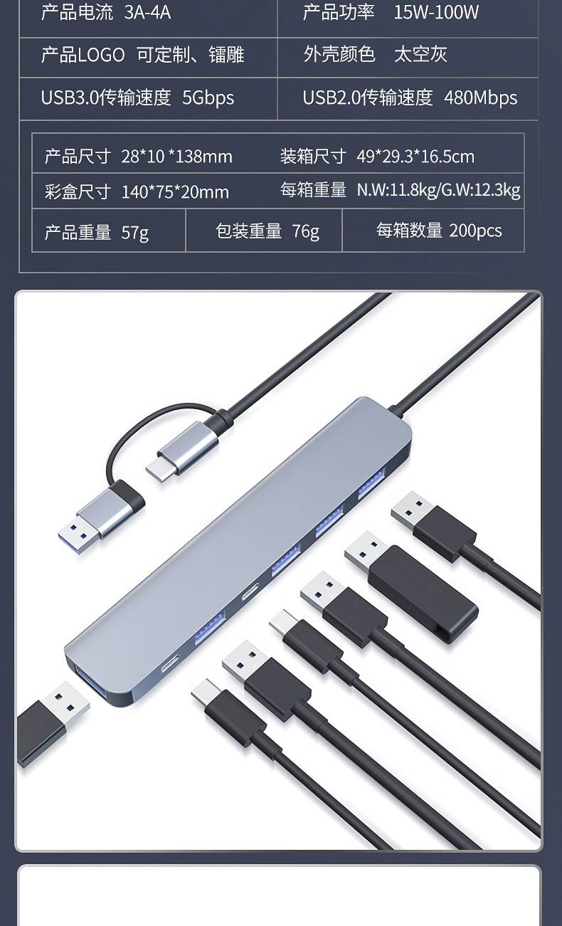 8 대 1 듀얼 헤드 고속 허브 도킹 스테이션 다기능 Type-c 도킹 스테이션 노트북 usb3.0 익스텐더