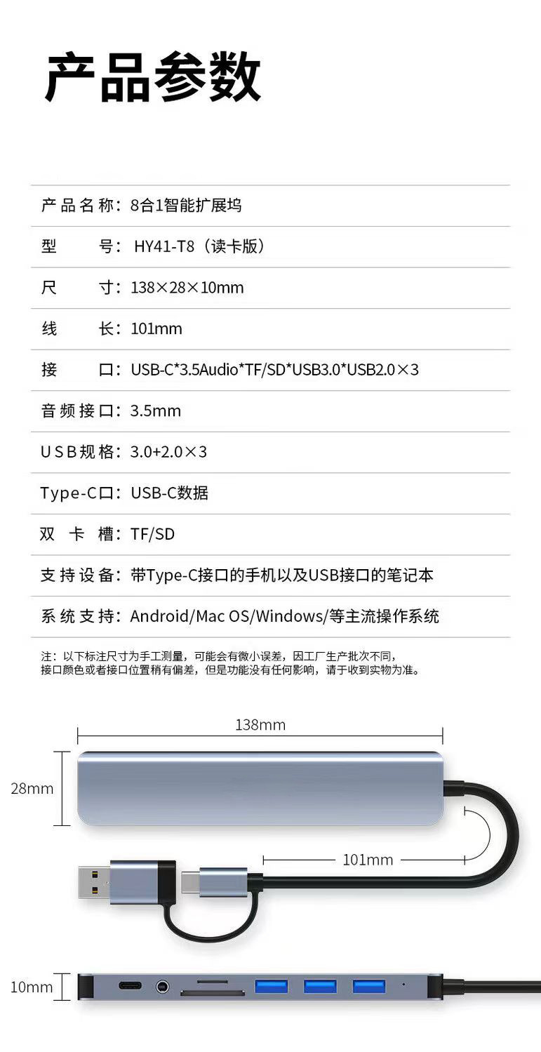 8 대 1 듀얼 헤드 고속 허브 도킹 스테이션 다기능 Type-c 도킹 스테이션 노트북 usb3.0 익스텐더스토어 가기