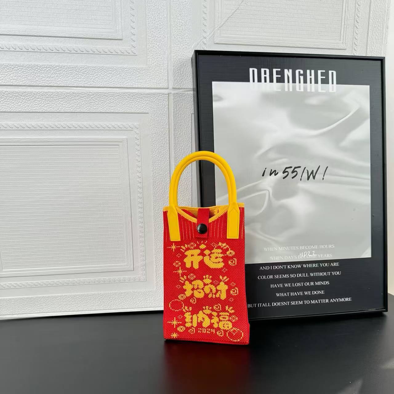 2025 신년 축제 니트 휴대 전화 가방 새해 축복 시리즈 개인화 된 올 매치 크로스 바디 백 하이 엔드 센스 백