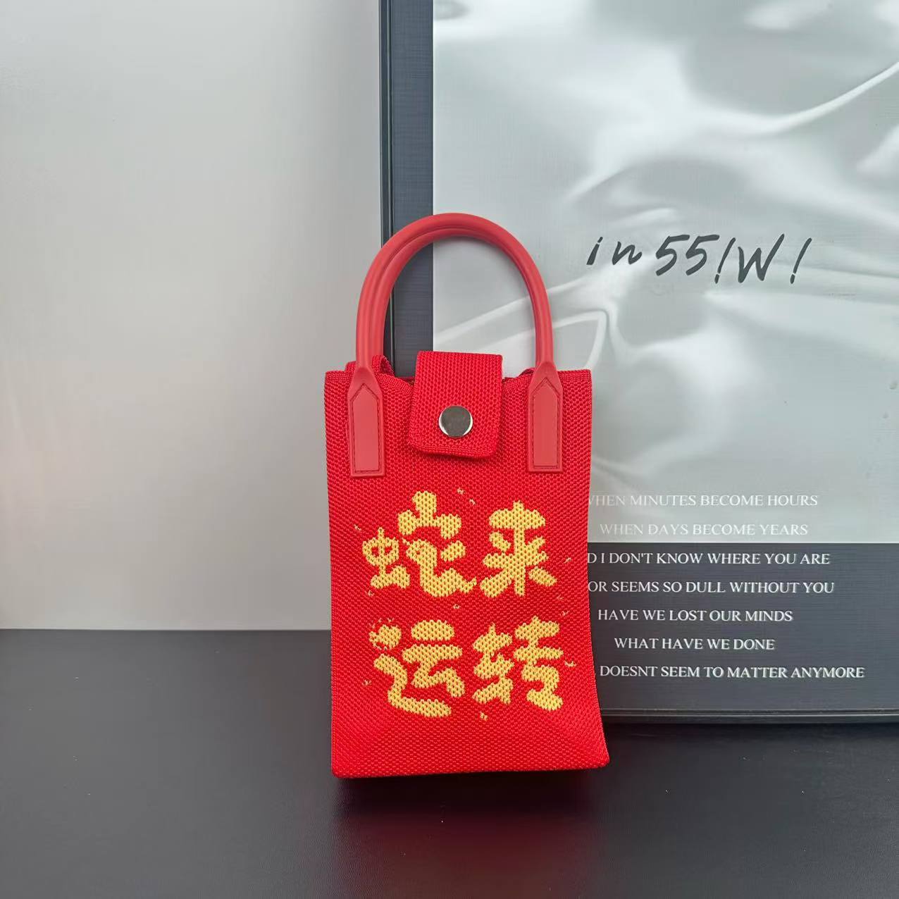 2025 신년 축제 니트 휴대 전화 가방 새해 축복 시리즈 개인화 된 올 매치 크로스 바디 백 하이 엔드 센스 백스토어 가기