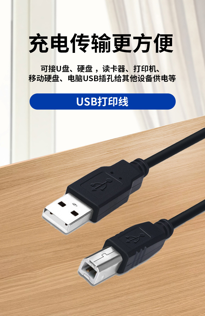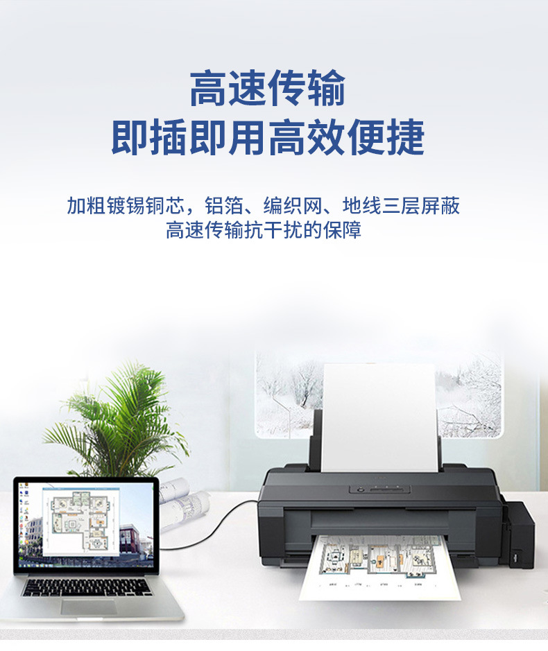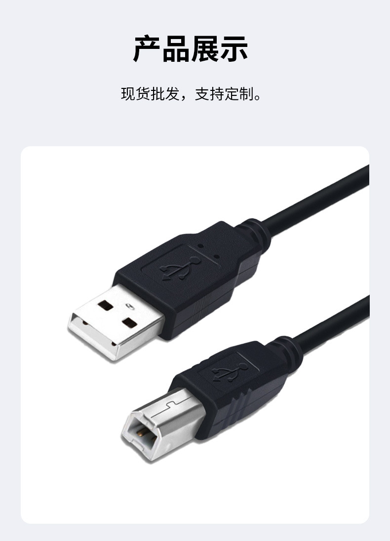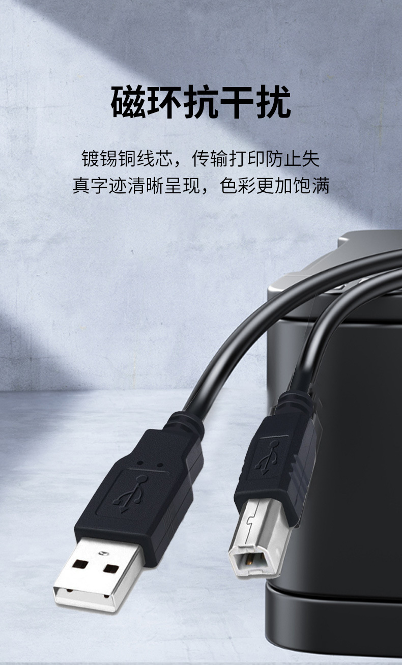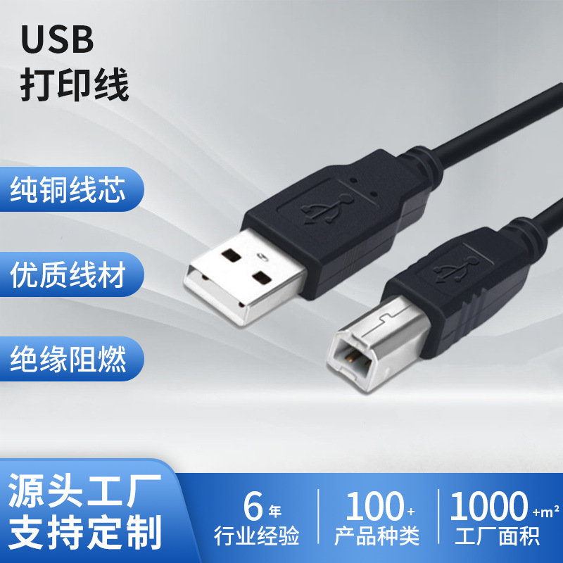 USB2.0 인쇄 케이블 검정색 사각형 포트 프린터 데이터 케이블 컴퓨터 호스트 사각형 포트 A/B 1.8m 5m스토어 가기