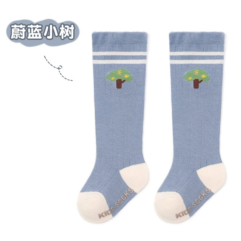 24 가을과 겨울 느슨한 입 미끄럼 방지 아기 높은 양말 유아 어린이 긴 양말 줄무늬 만화 분배 무릎 양말