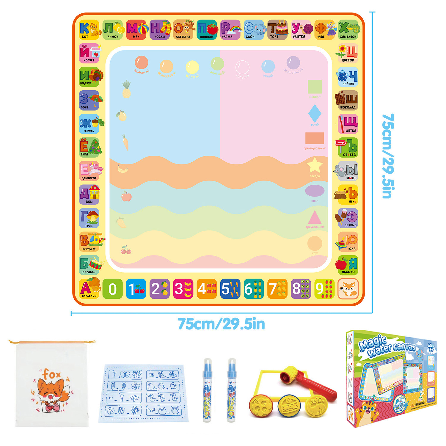 跨境热卖彩虹神奇水画布儿童魔法学习毯可重复清水绘画益智玩具