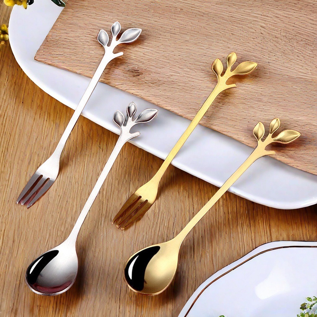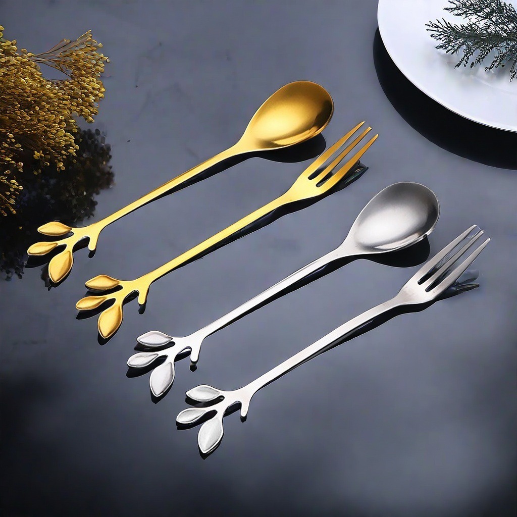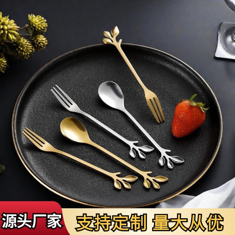 스테인리스 스틸 창의적인 고급스러운 나뭇잎 모양 스푼 포크 커피 스푼 가정용 식사 스푼 믹싱 스푼 디저트 포크 도매