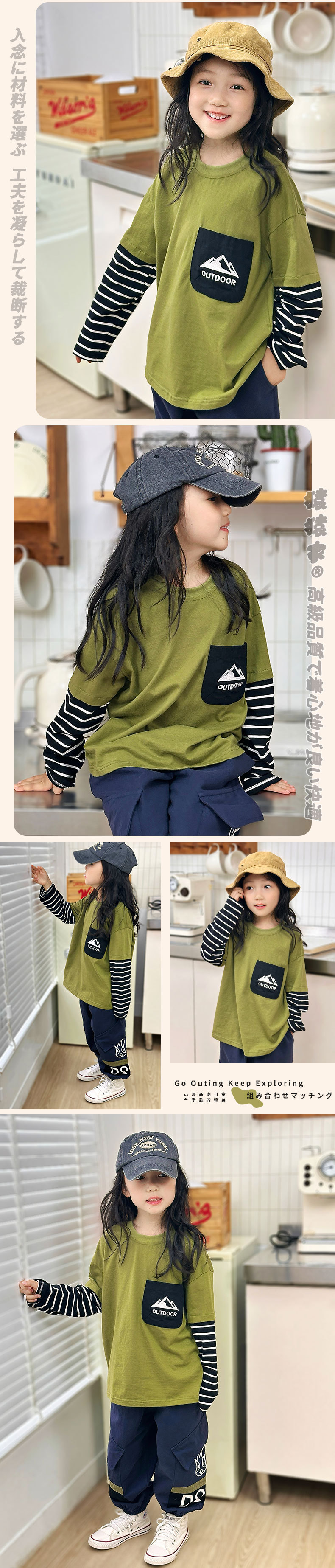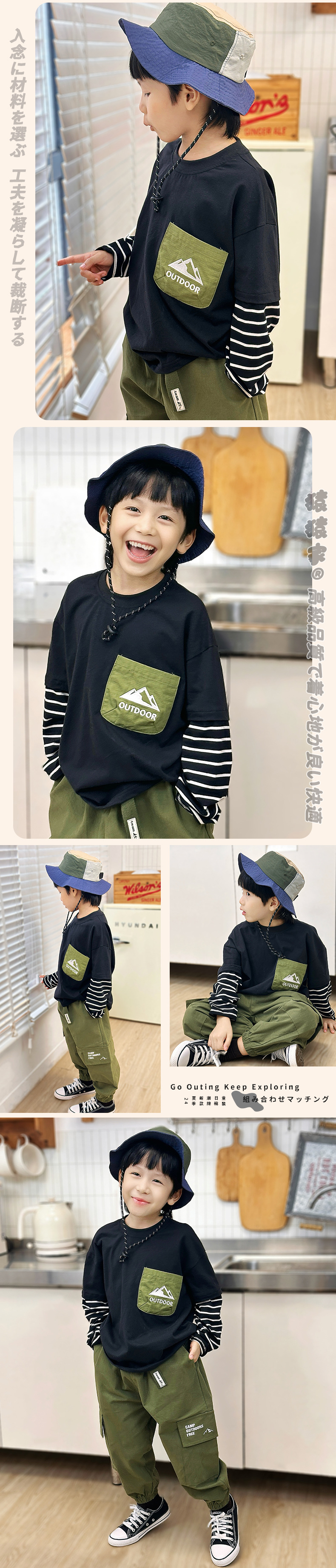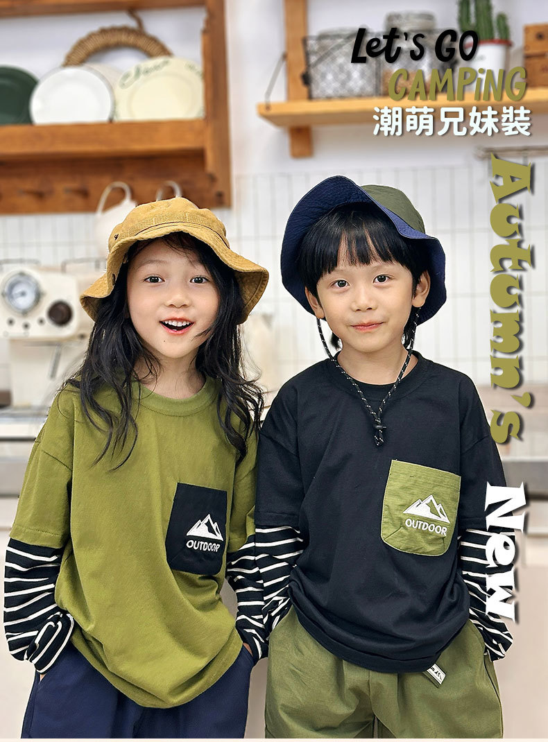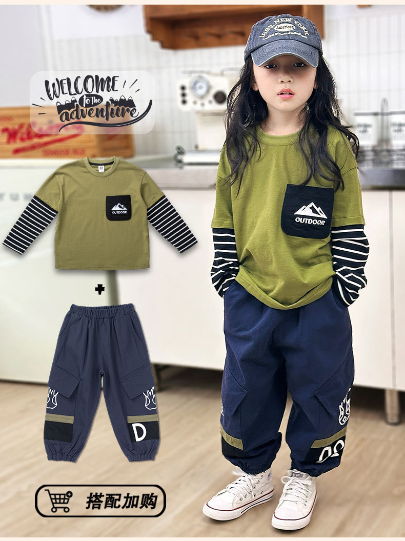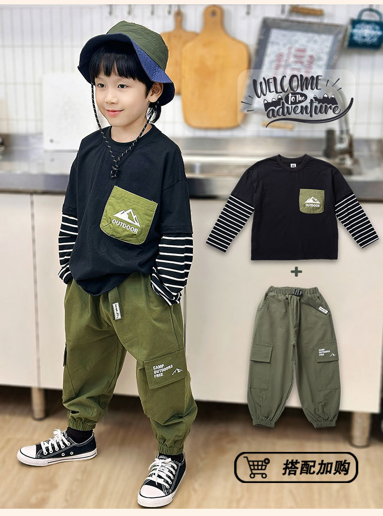 소년 긴팔 티셔츠 Yanxi 의류 봄 아동 의류 소년 스트라이프 가짜 투피스 탑 아동 순면 티셔츠 신규스토어 가기