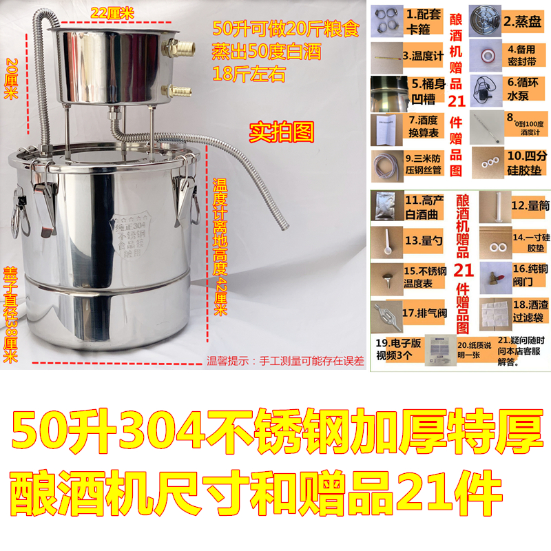 • 50리터 발효 및 증류 일체형 기계 304 식품 등급 강화 스테인레스 스틸