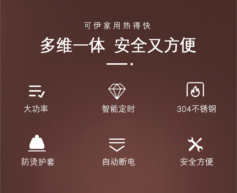 • 2000W는 자동으로 전원이 차단되지 않으며 집에서 물을 더 빨리 끓일 수 있습니다.