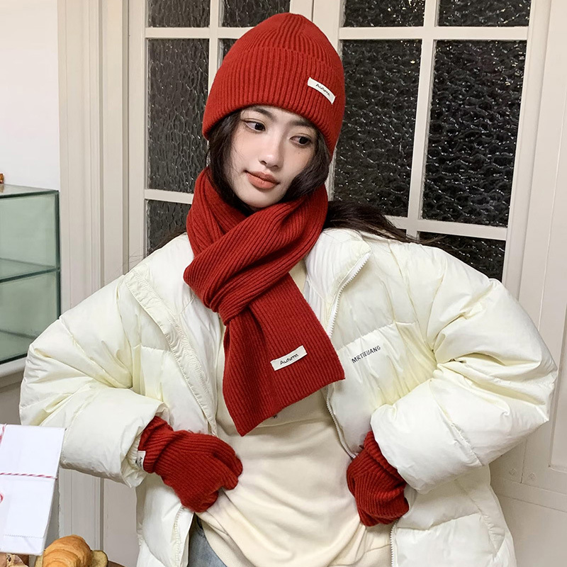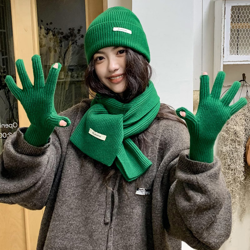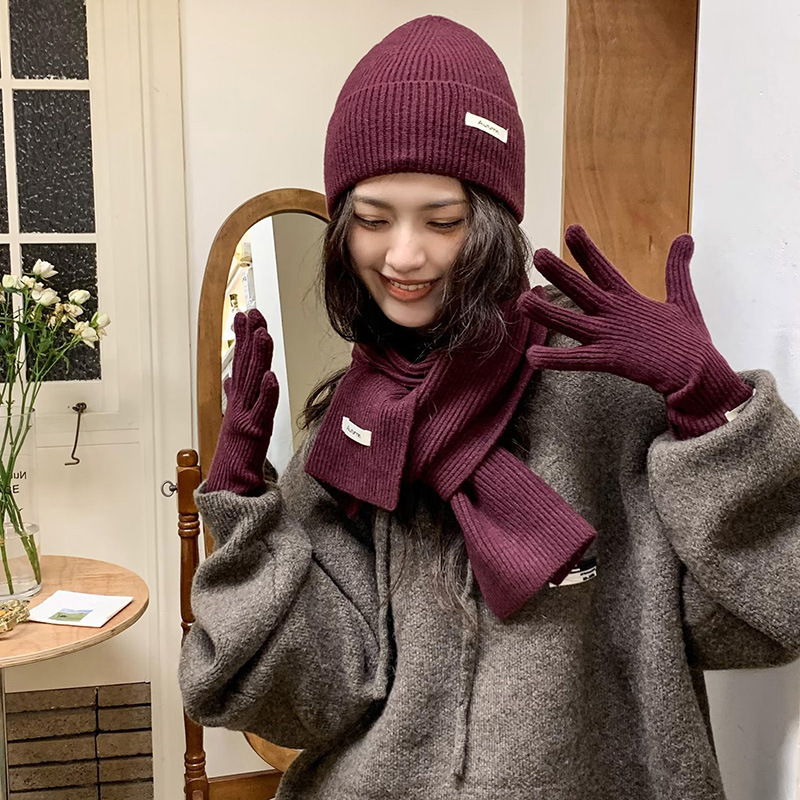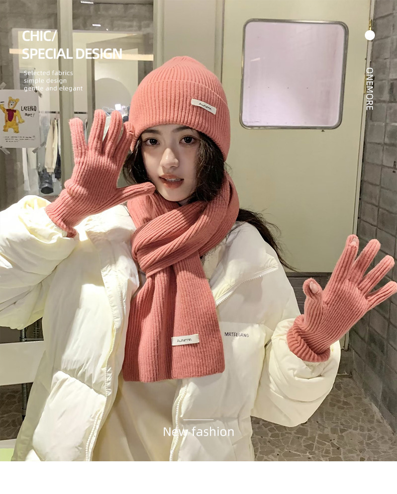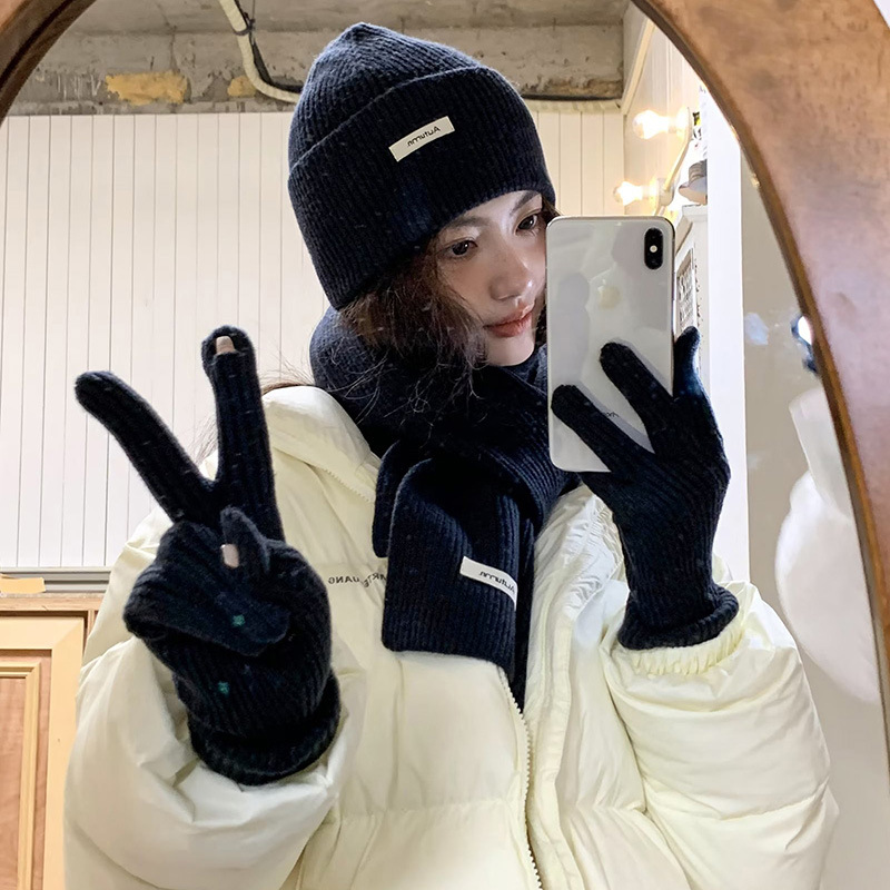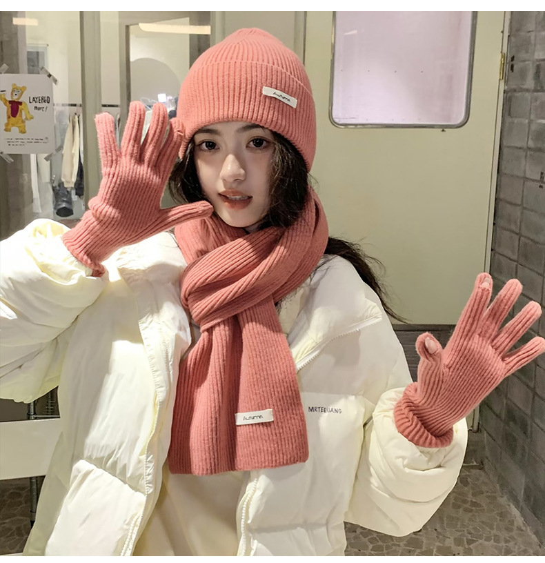 울 스카프 장갑 모자 여자 친구 선물을위한 3 피스 세트 가을과 겨울 올 매치 두꺼운 따뜻한 스카프 여성의 한국어 버전