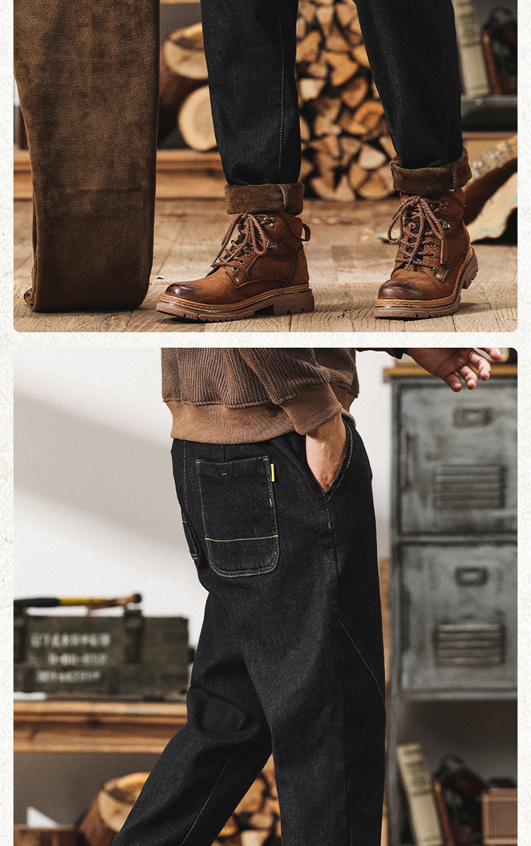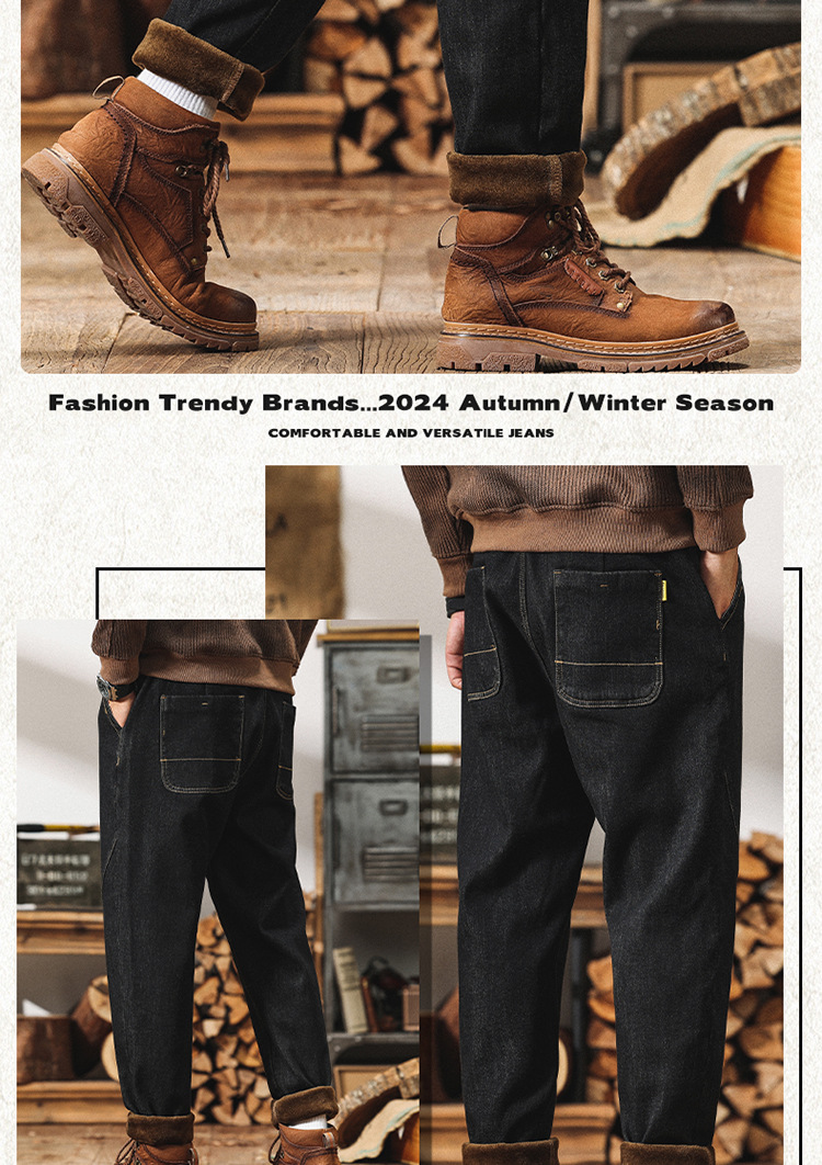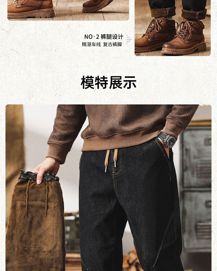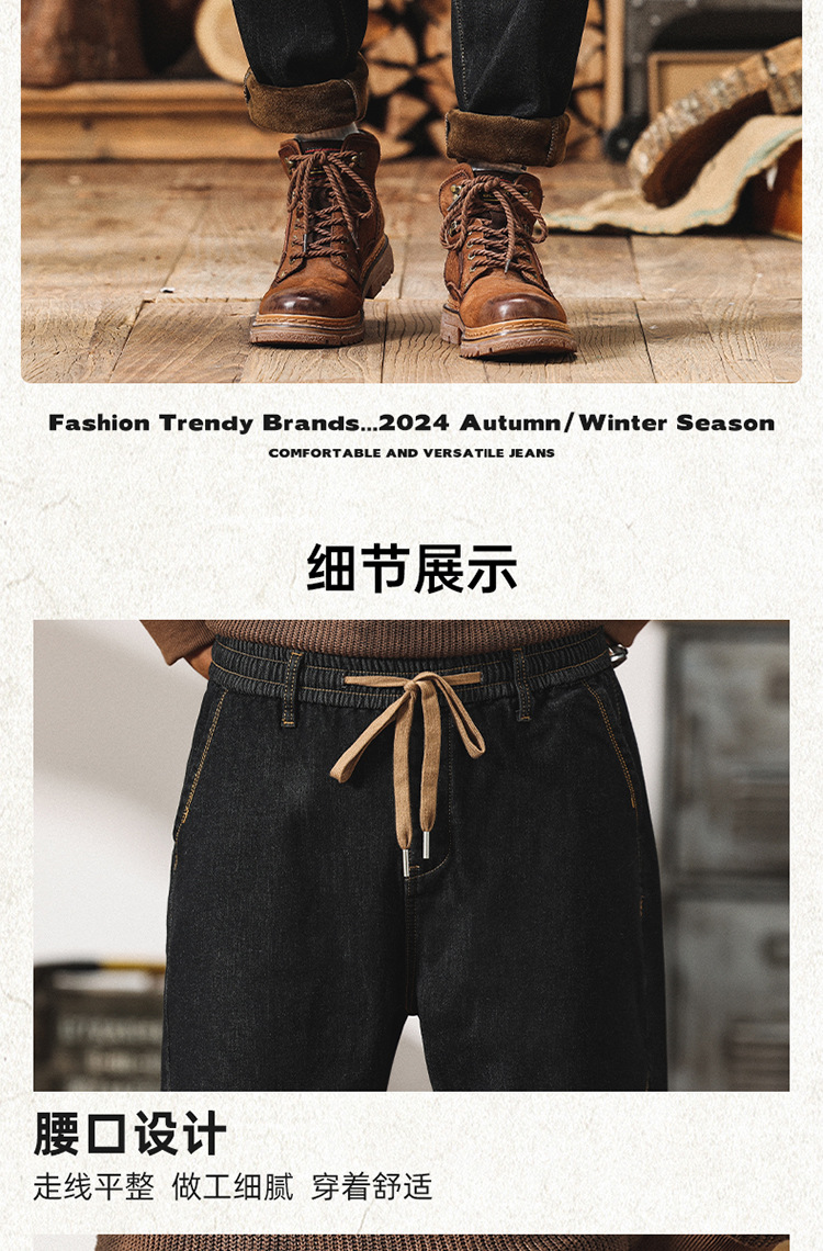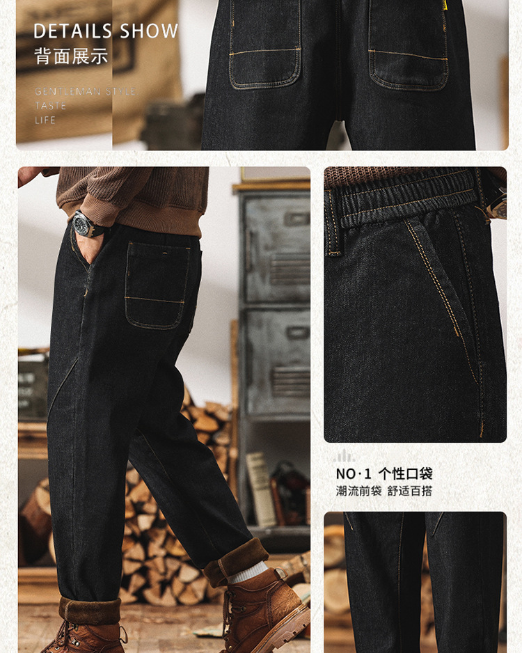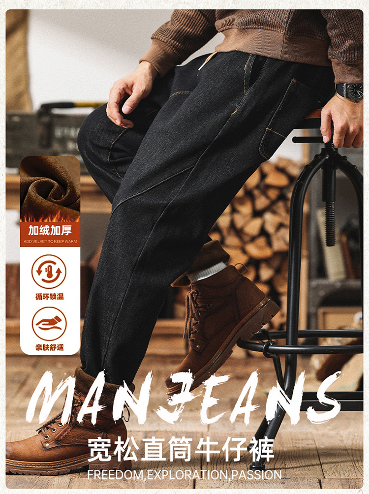 Winter Harlan 기모 청바지 남성용 느슨한 일본식 플러스 사이즈 드로스트링 스트레치 슬림 핏 타이드 스트레이트 바지스토어 가기