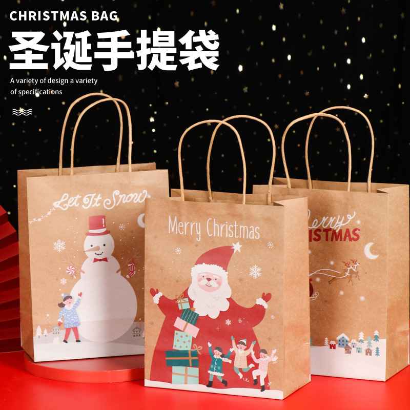 크리스마스 토트 백 크래프트 종이 가방 휴일 선물 가방 포장 테이크 아웃 선물 가방 귀여운 포장 디저트 포장스토어 가기