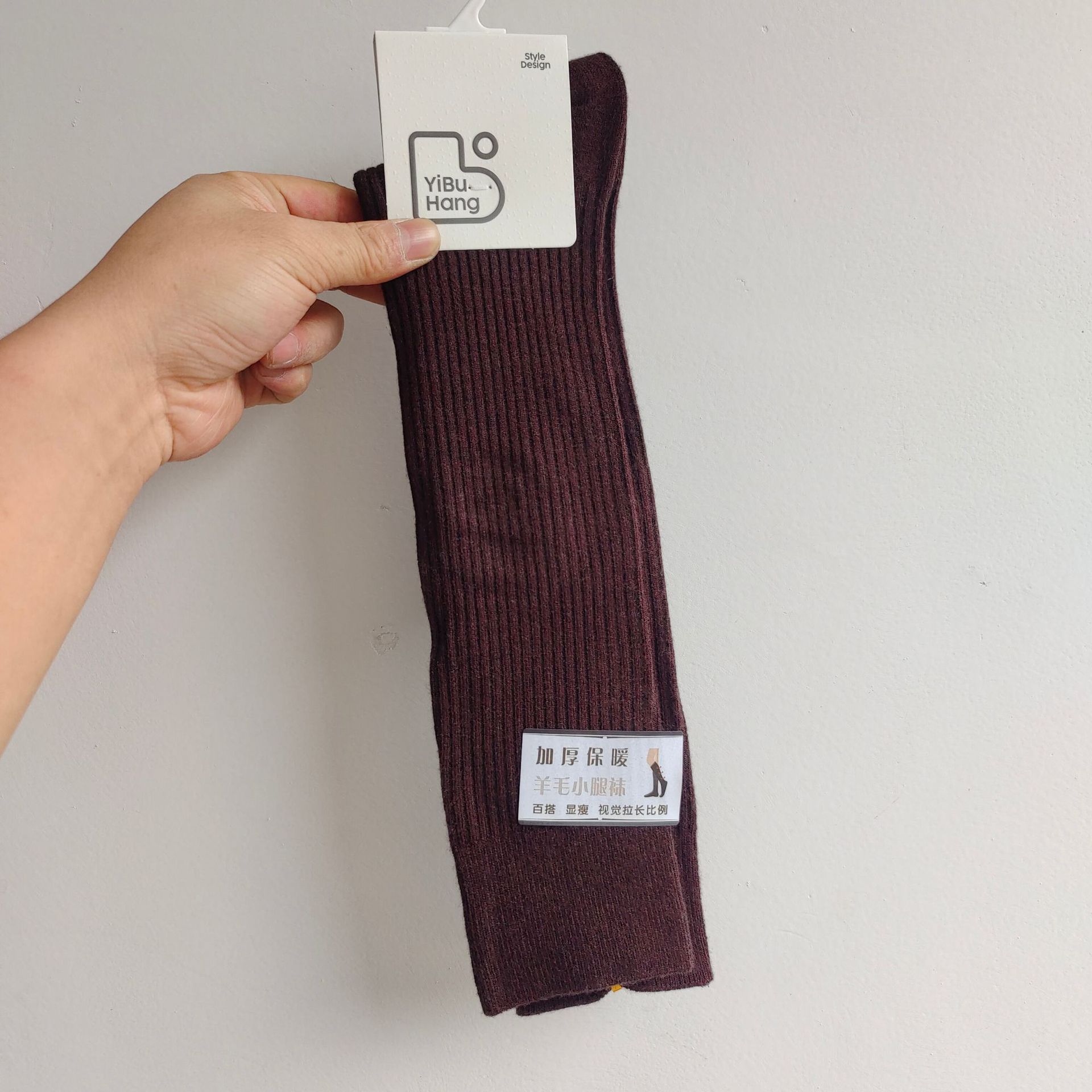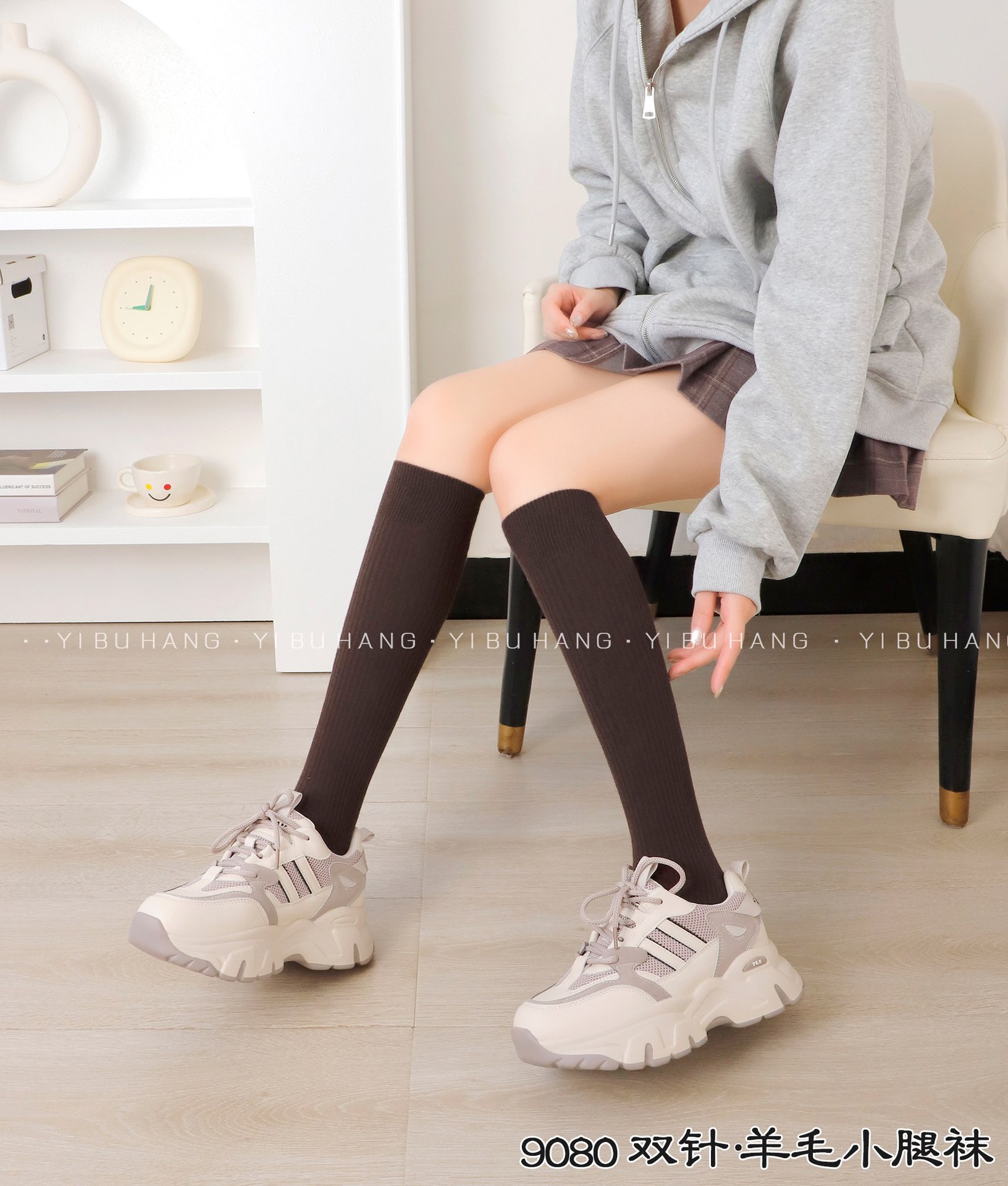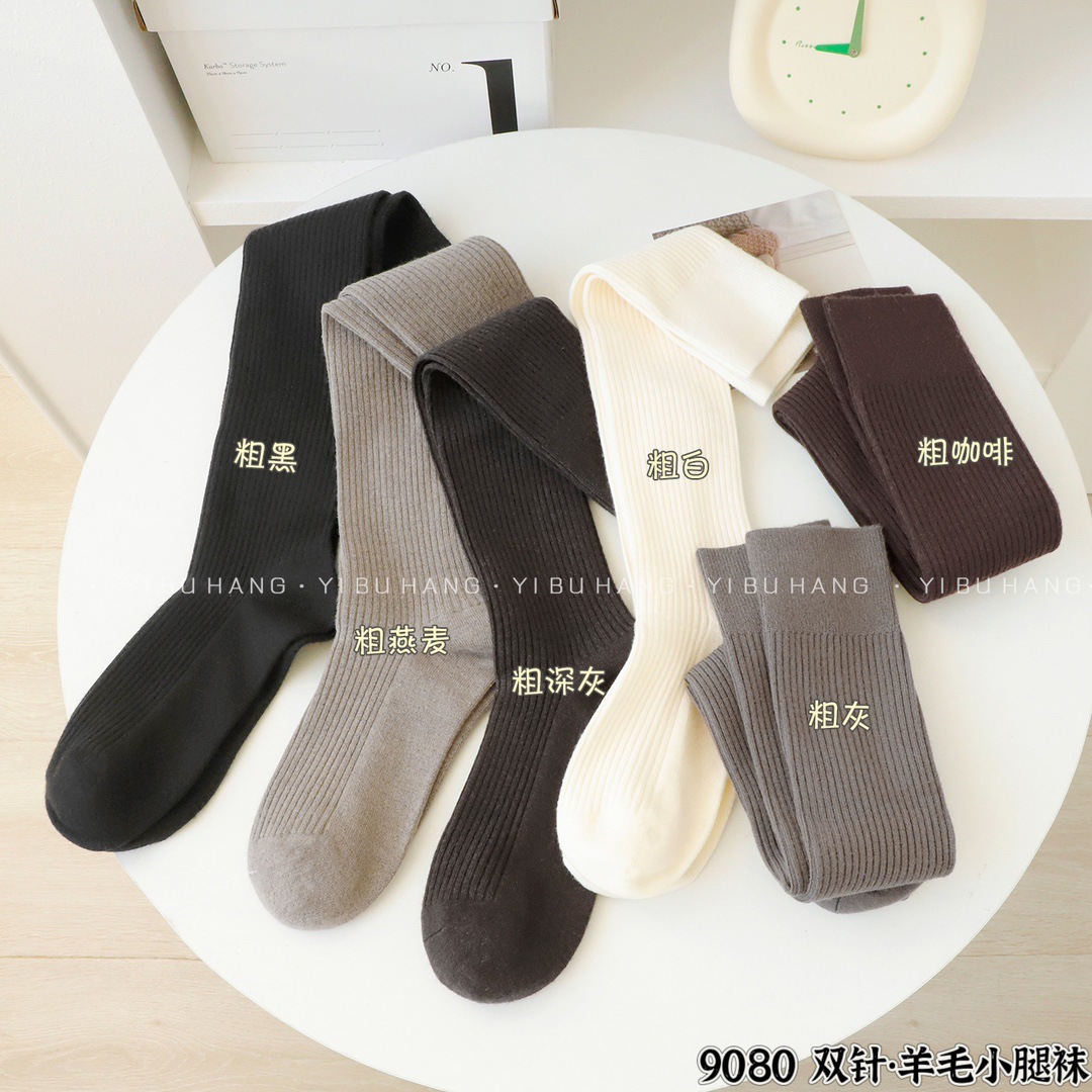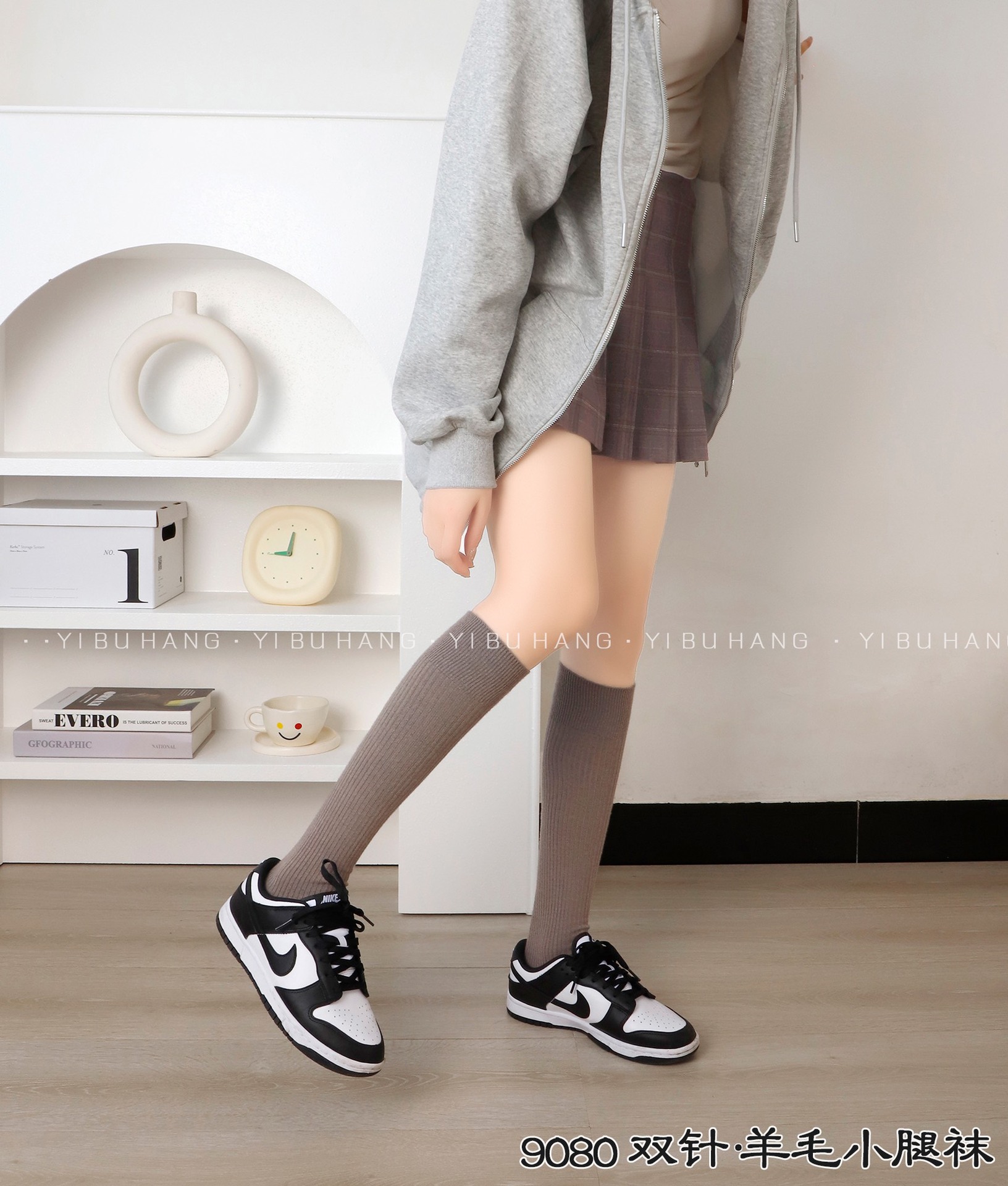 이부항 가을과 겨울 두꺼운 더블 바늘 양모 종아리 양말 따뜻한 양말에 올 매치 단색 얇은 부드러운