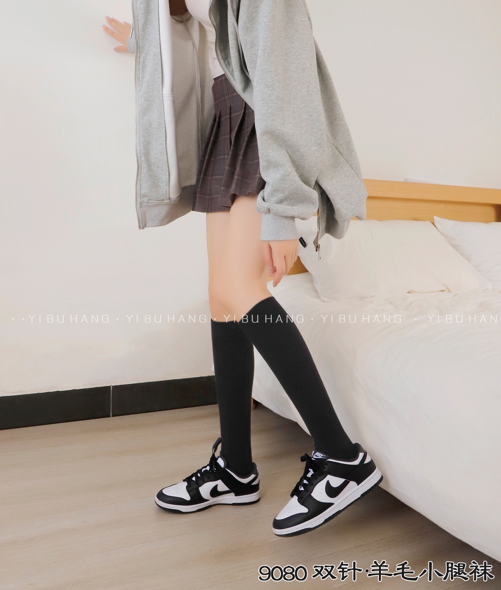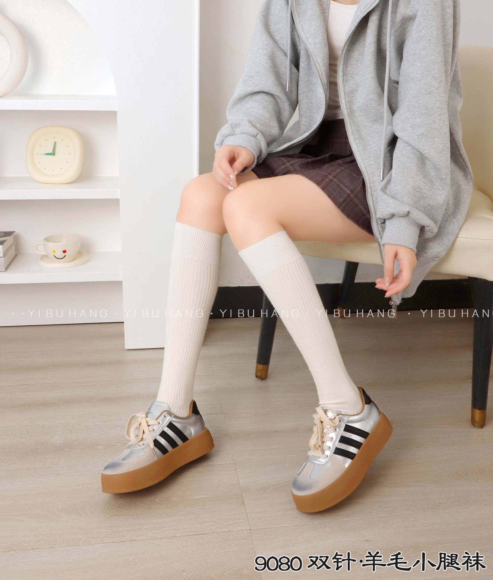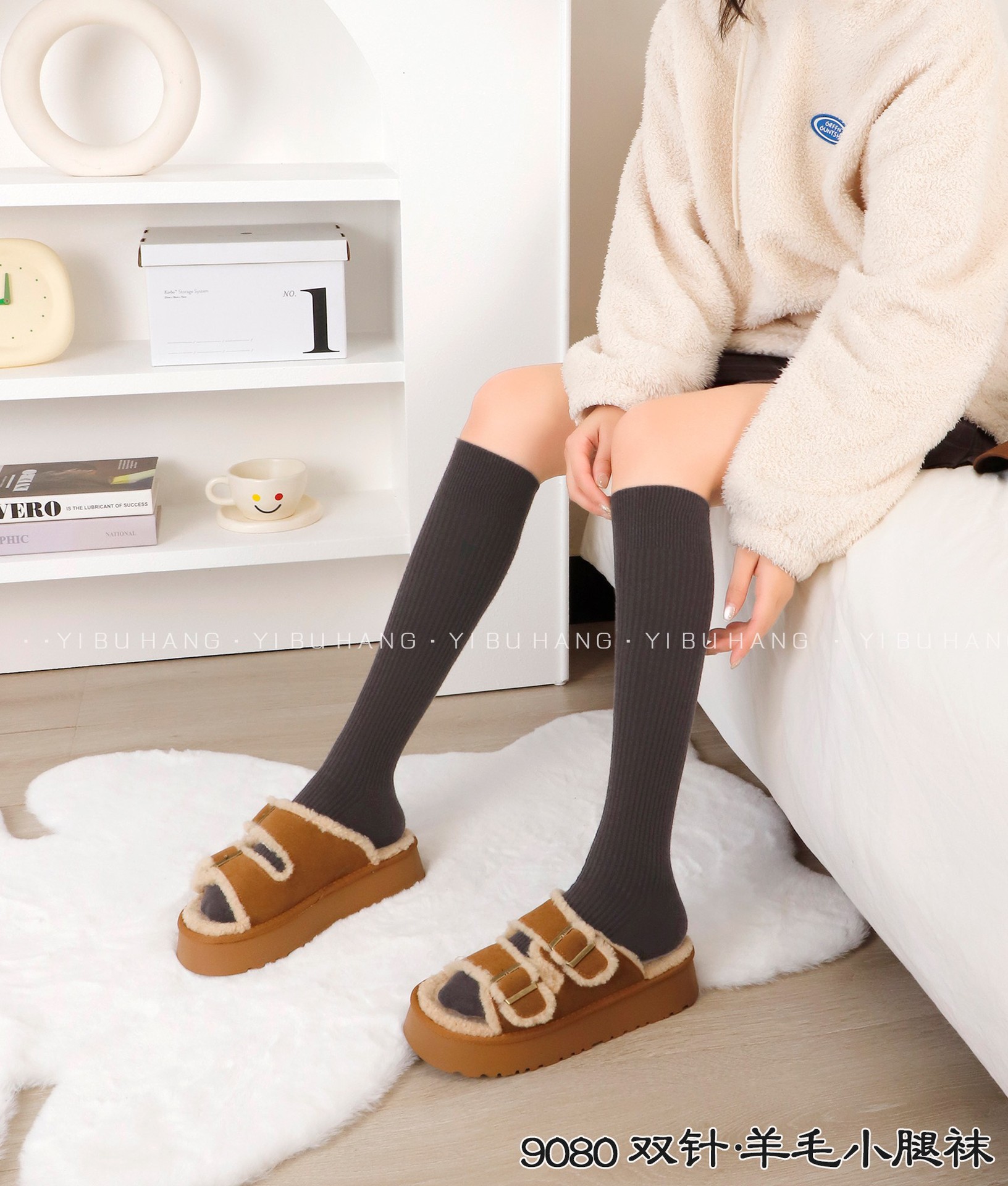 이부항 가을과 겨울 두꺼운 더블 바늘 양모 종아리 양말 따뜻한 양말에 올 매치 단색 얇은 부드러운