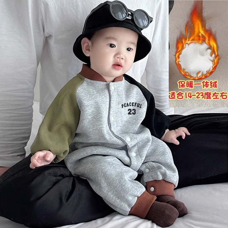 기모 아기 점프 수트 가을과 겨울 3 개월 9 아기 슈퍼 귀여운 100 일 밖으로 옷 따뜻한 코트 귀여운 등반 세트스토어 가기