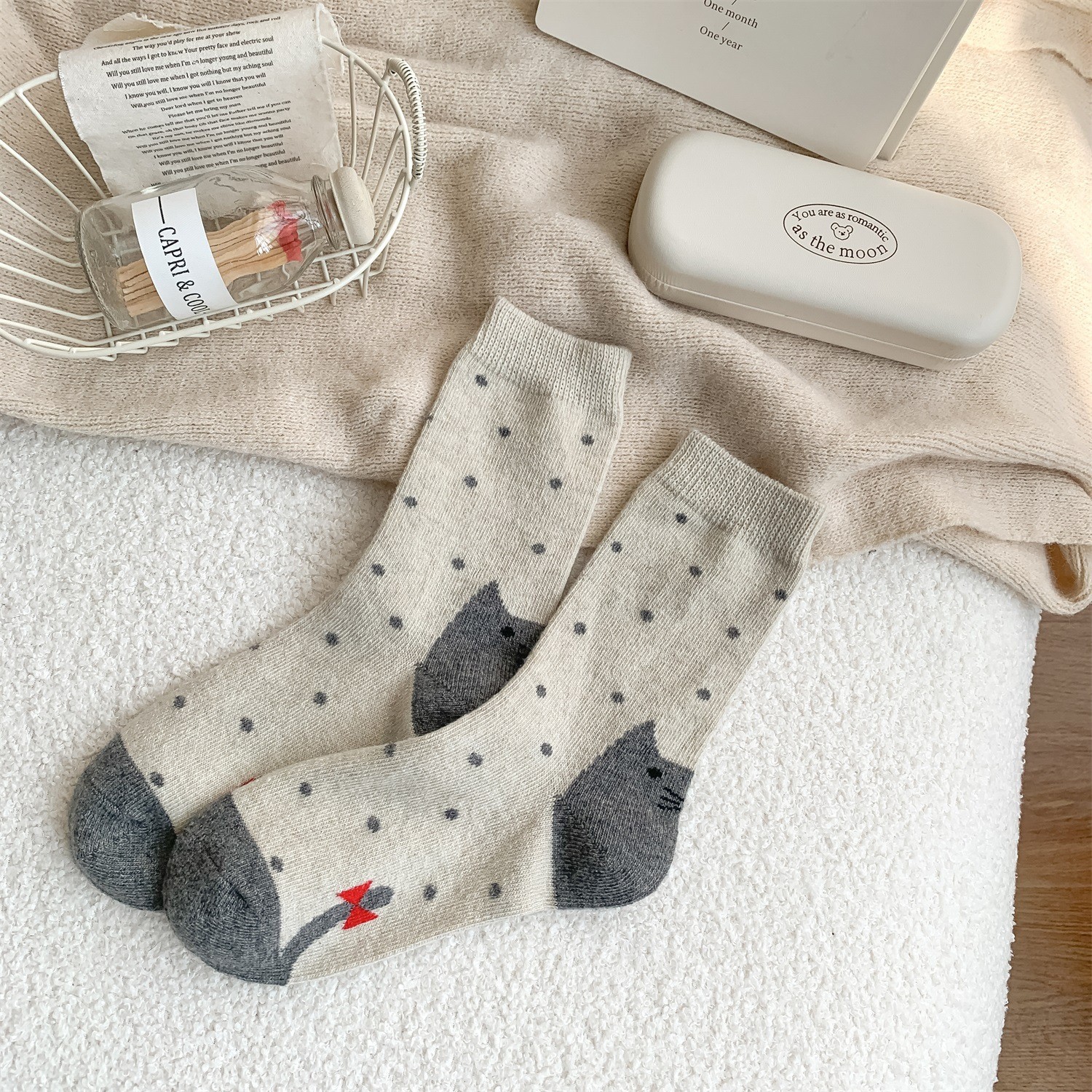 귀여운 큰 귀 강아지 자수 양모 양말 여성 두꺼운 따뜻한 양말 한국 아카데미 스타일 줄무늬 스택 양말스토어 가기