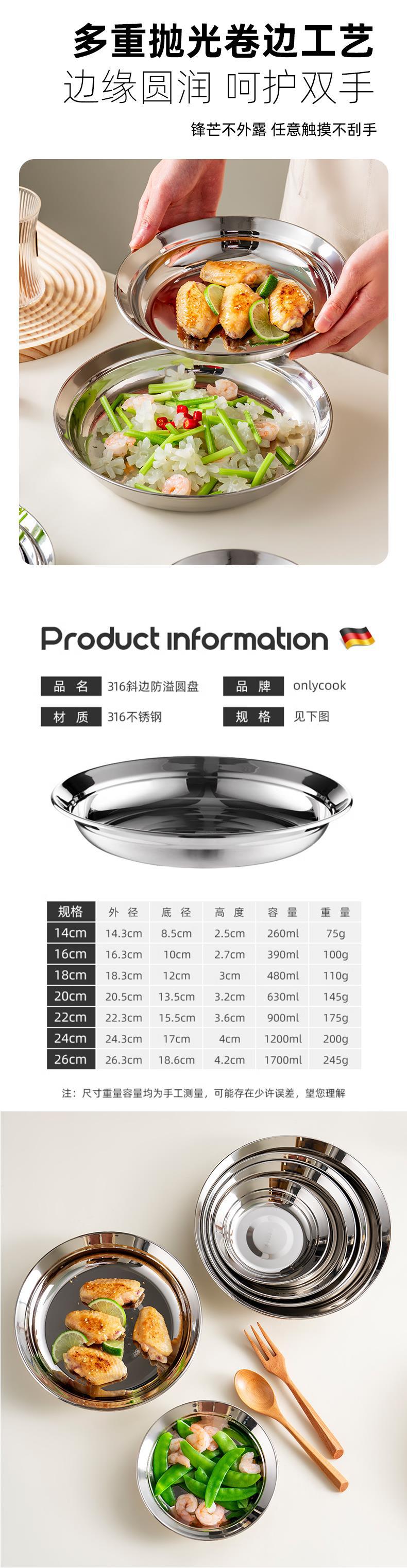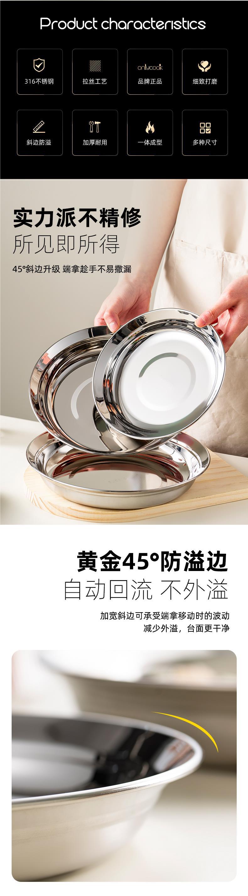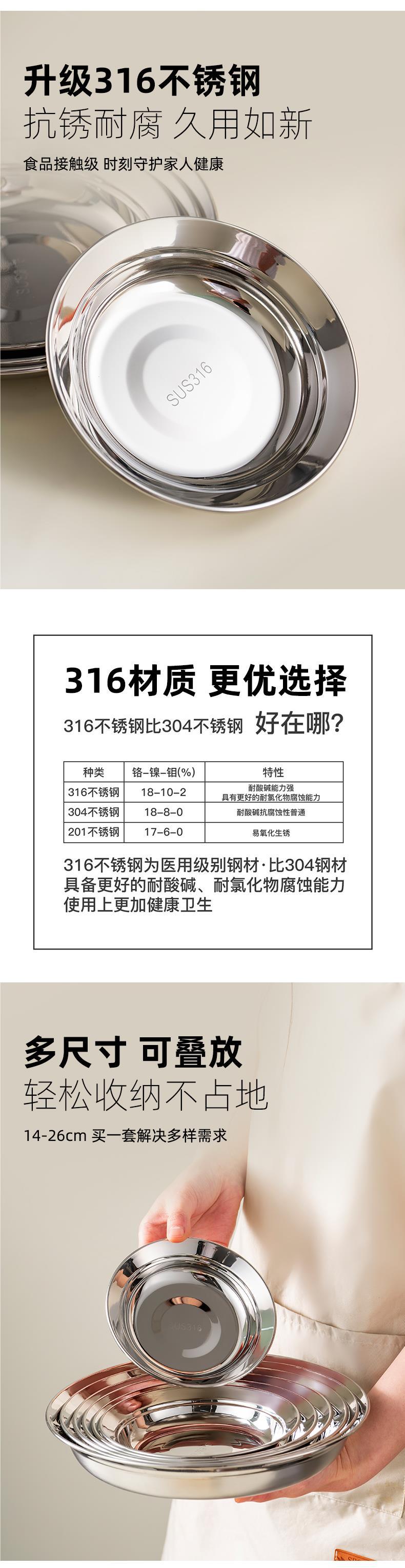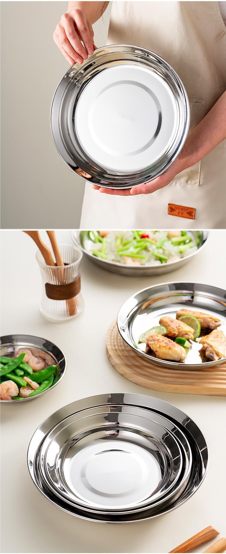 두꺼운 316 스테인리스 접시 식품 등급 접시 가정용 준비 접시 원형 접시 식기스토어 가기