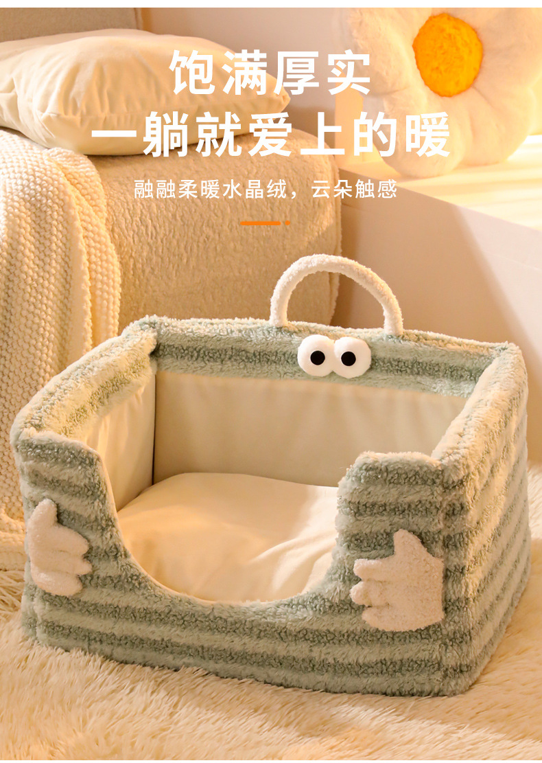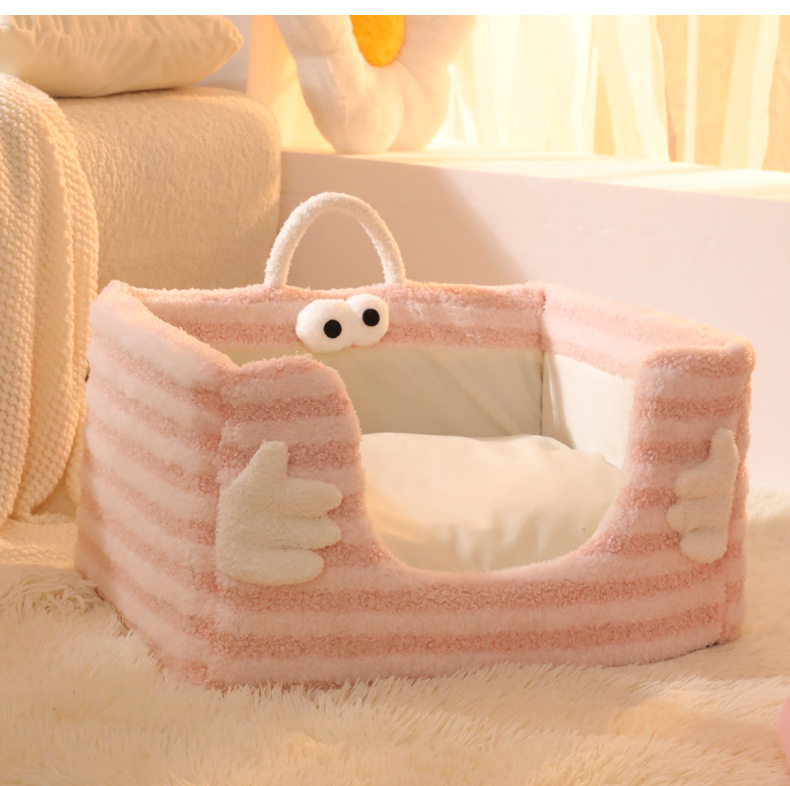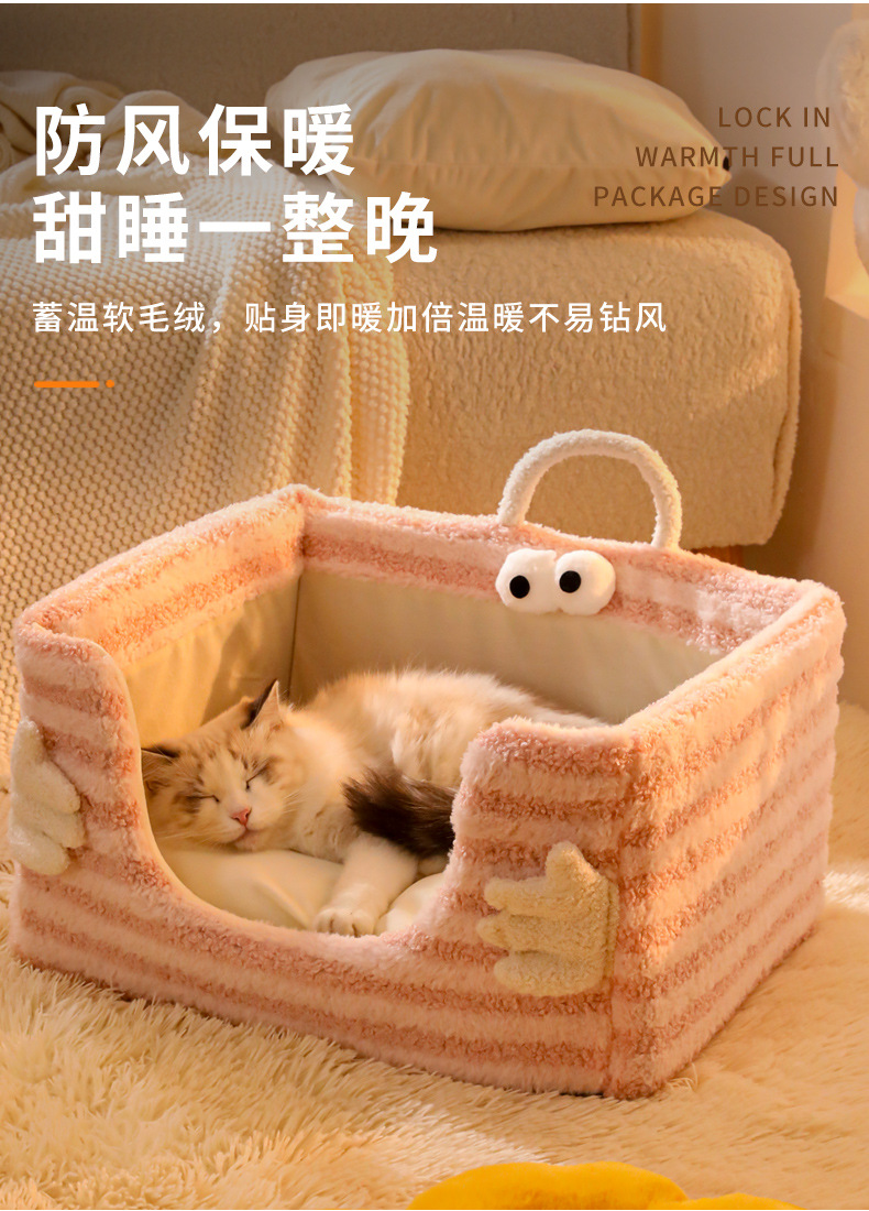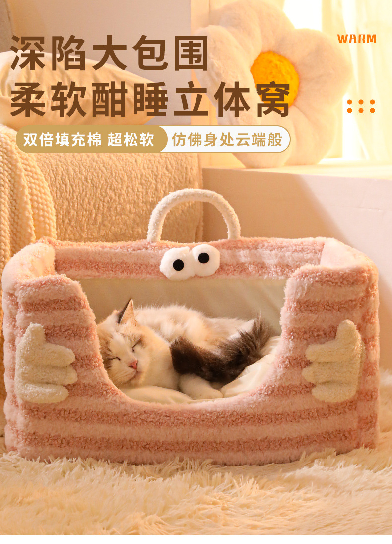 고양이 둥지 겨울 따뜻한 달 벨벳 손 포옹 스폰지 둥지 분리 가능하고 빨 수있는 개 둥지 반폐쇄 고양이 침대스토어 가기