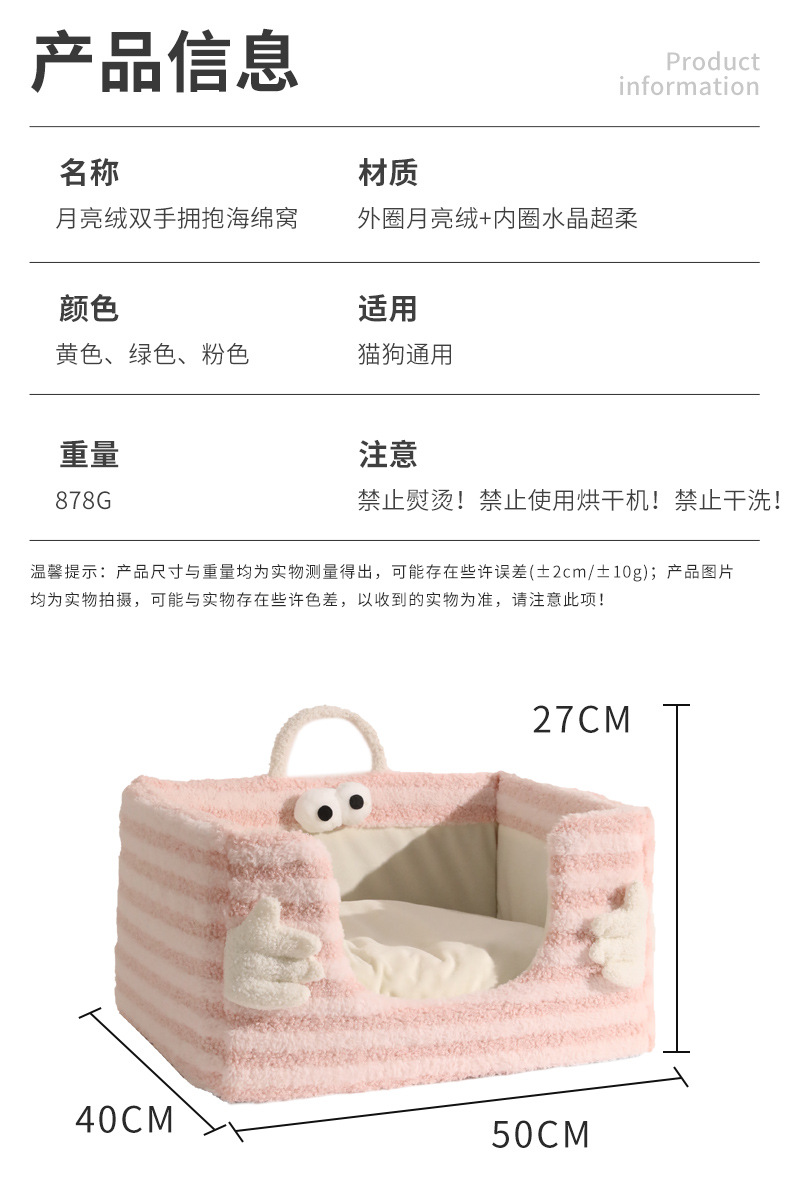 고양이 둥지 겨울 따뜻한 달 벨벳 손 포옹 스폰지 둥지 분리 가능하고 빨 수있는 개 둥지 반폐쇄 고양이 침대