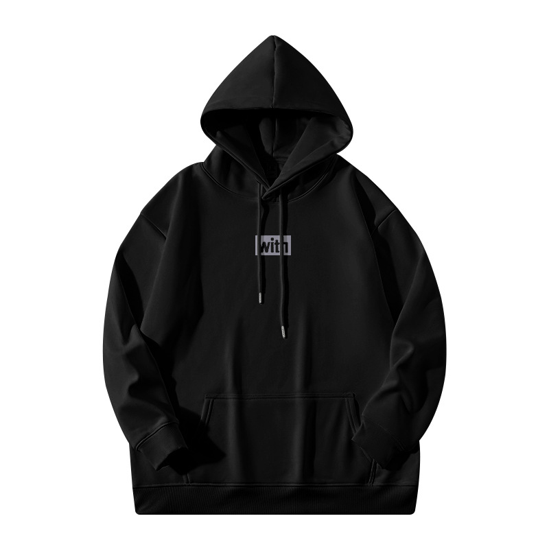 • 블랙 후드 스웨트셔츠 레귤러 스타일-3442【GL】