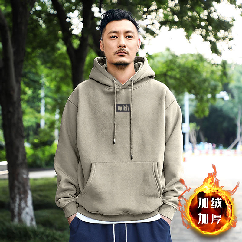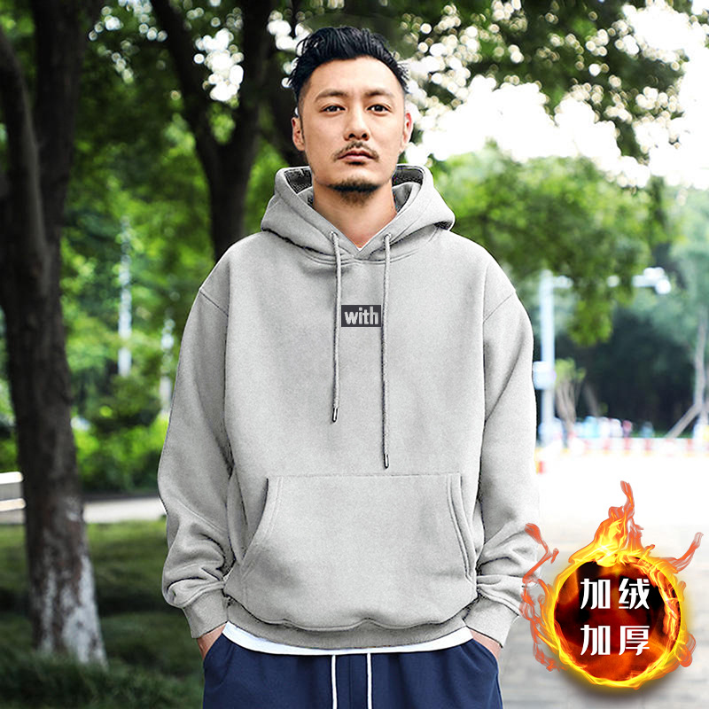 • 오트밀 그레이 후드 스웨트셔츠 플러스 플리스 스타일-3442【GL】
