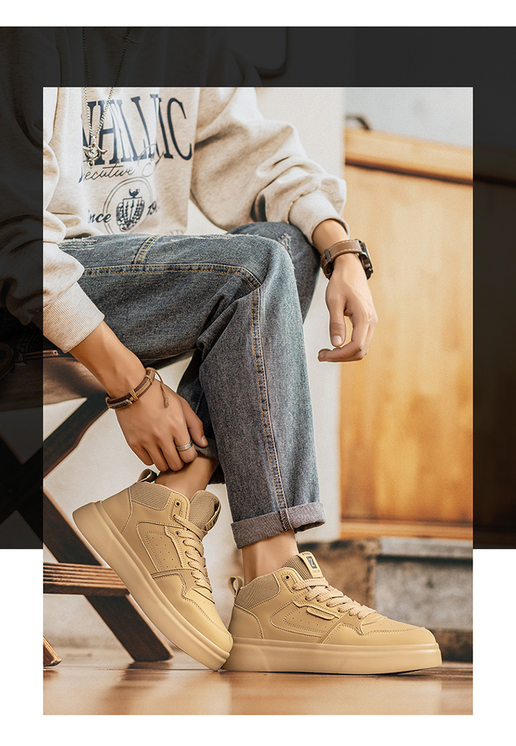 Putian 남성용 신발 겨울 2024 새로운 스포츠 캐주얼 하이 탑 보드 신발 두꺼운 단독 남성 작업복 가을 미드 탑 트렌디 신발스토어 가기
