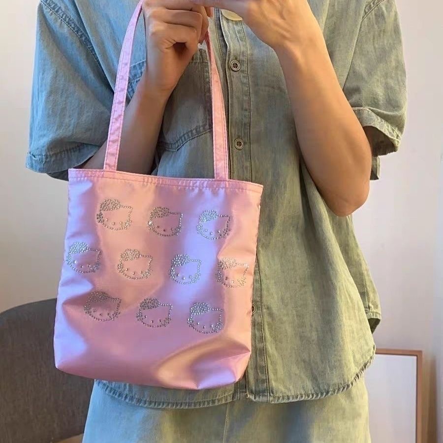 맞춤형 헬로 키티 핫 다이아몬드 숄더백 실크 숄더백 귀여운 하이 엔드 키티 토트 여성용 다용도 핸드백