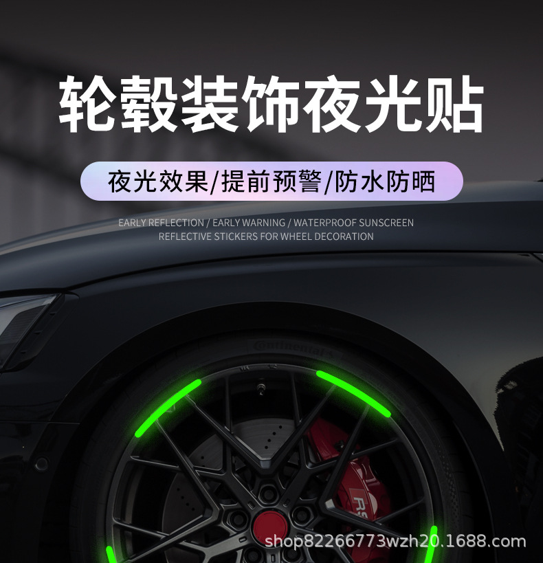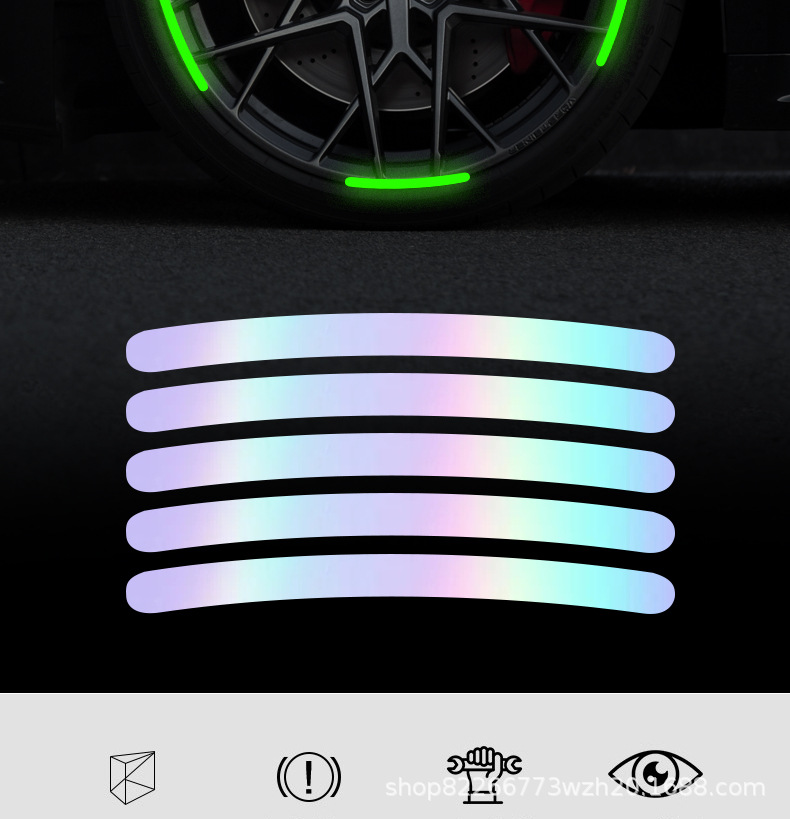 자동차 맞춤형 발광 휠 스티커 자동차 보편적 인 다채로운 레이저 발광 스티커 전기 자동차 타이어 충돌 방지 반사 스티커