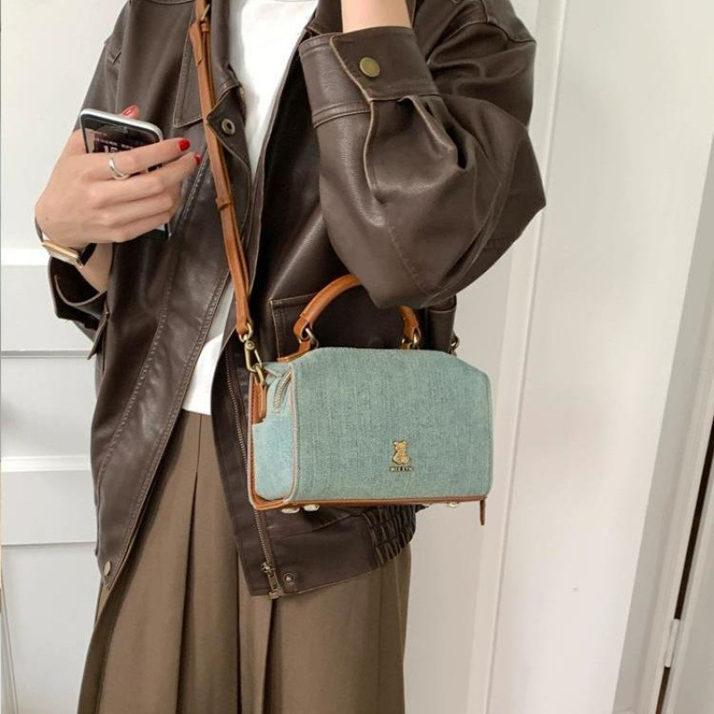 가을과 겨울 가방 여성의 2024 새로운 틈새 데님 베개 가방 레트로 보스턴 휴대용 크로스 바디 백스토어 가기