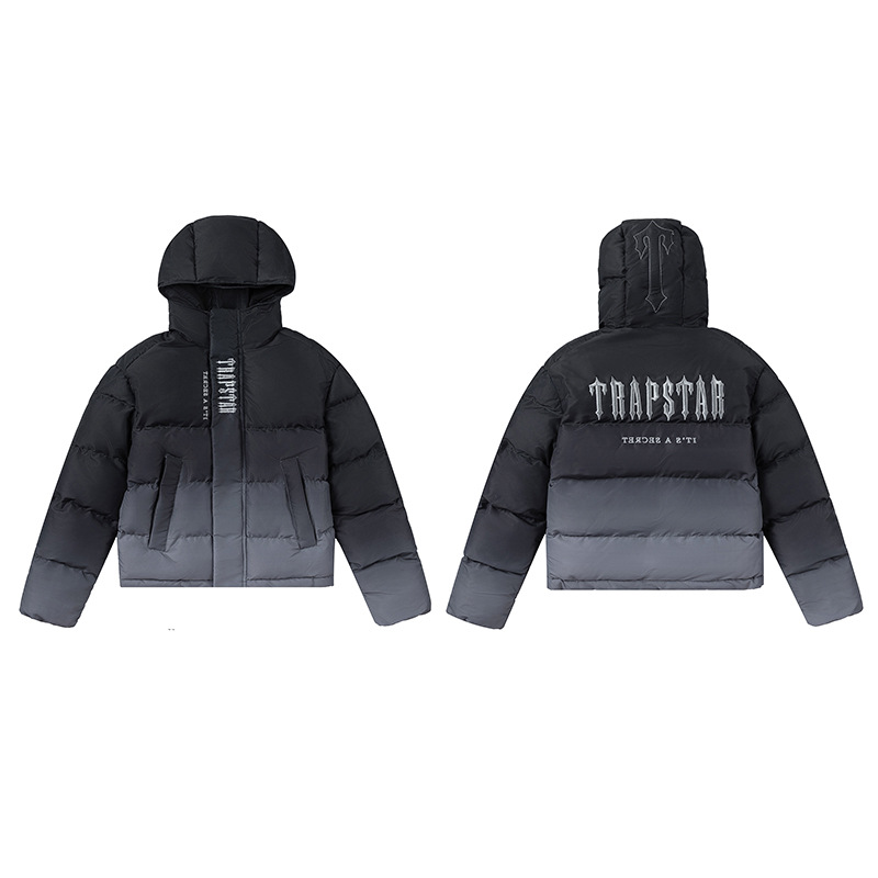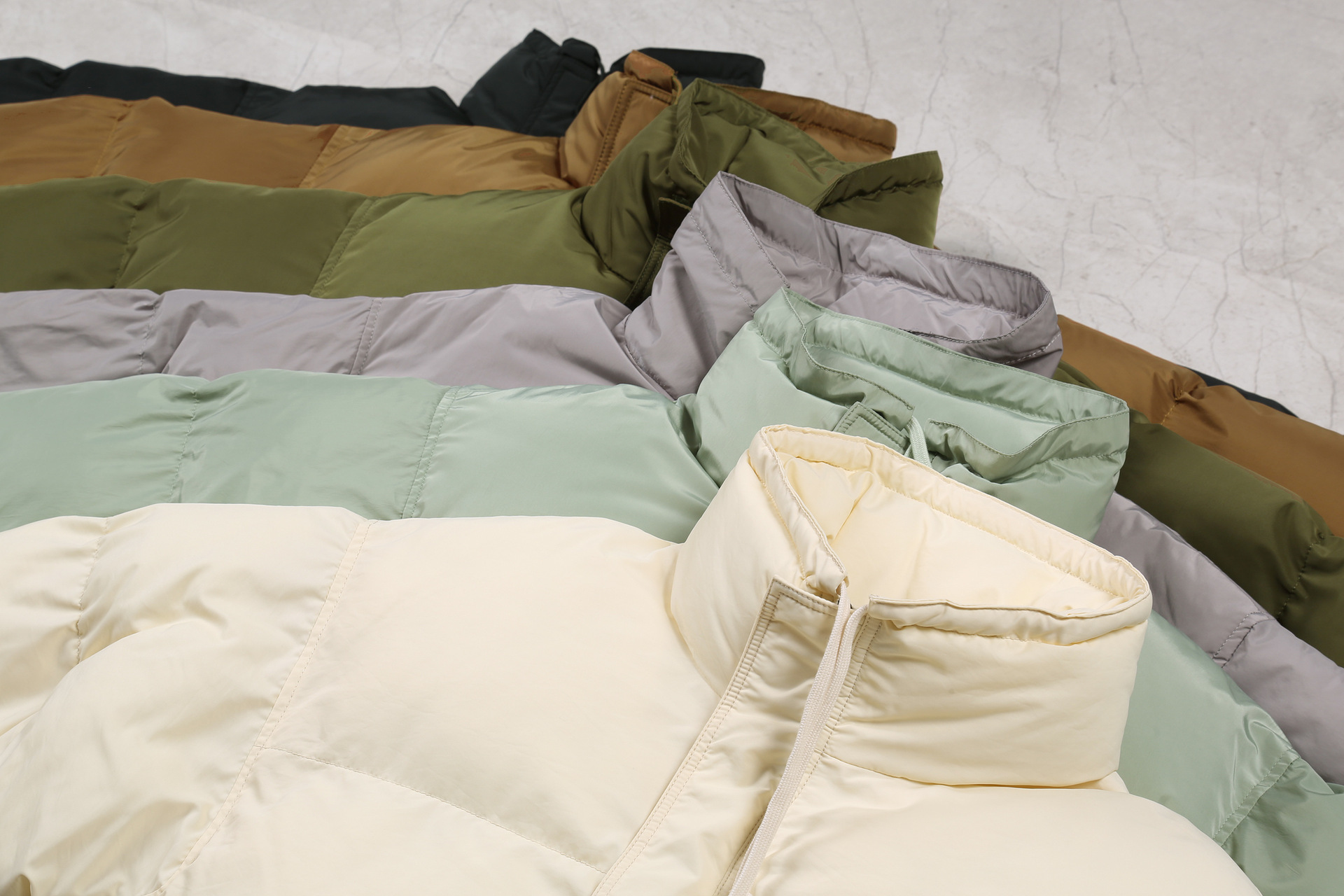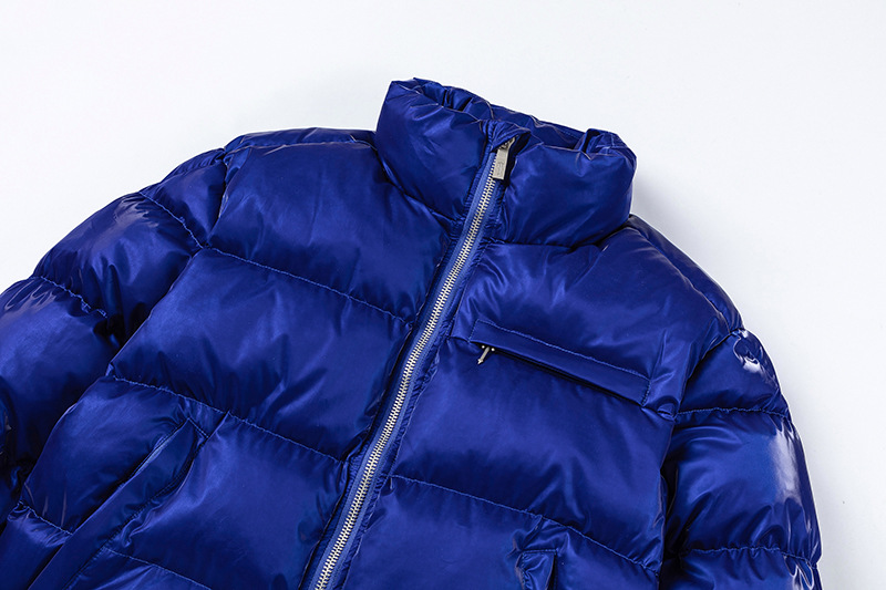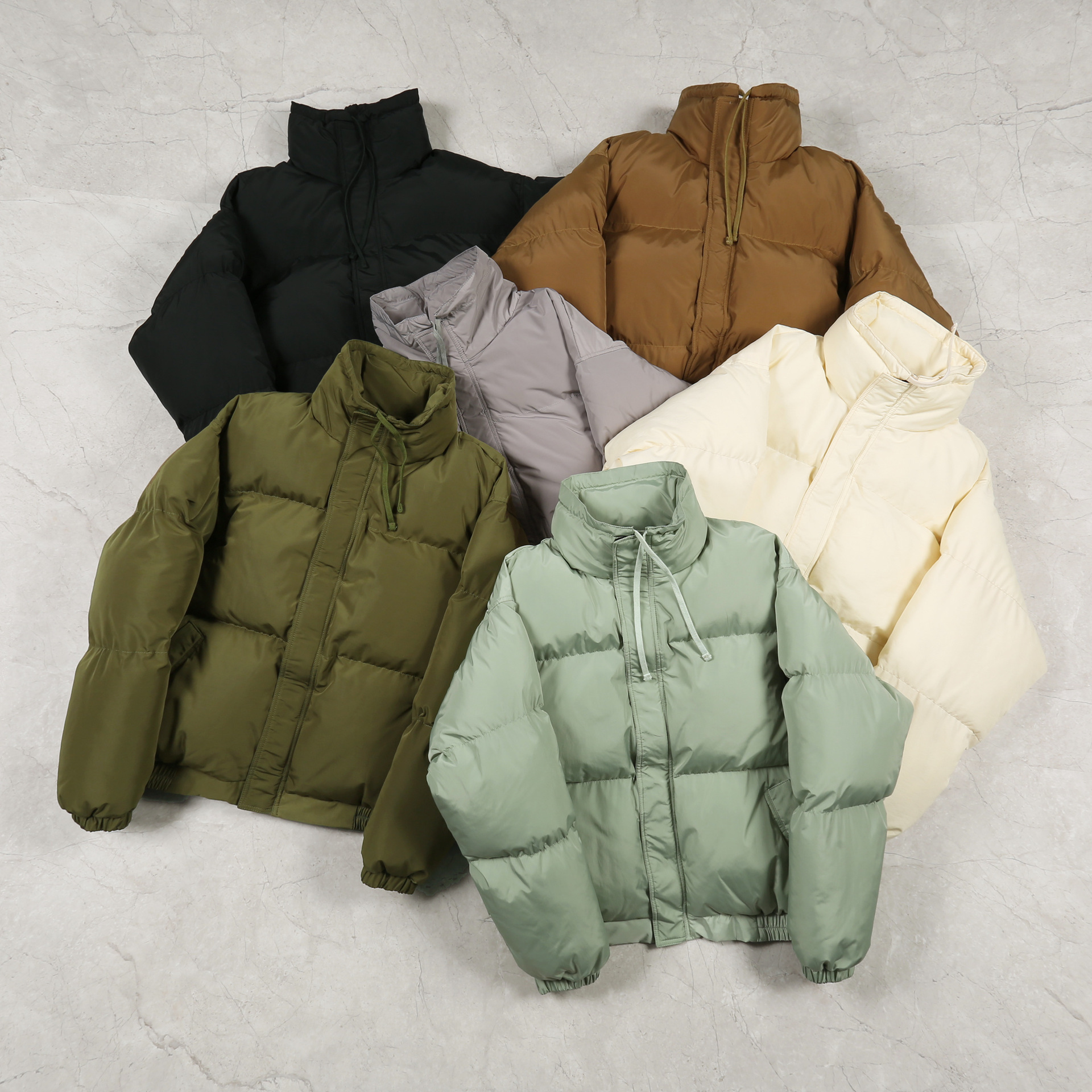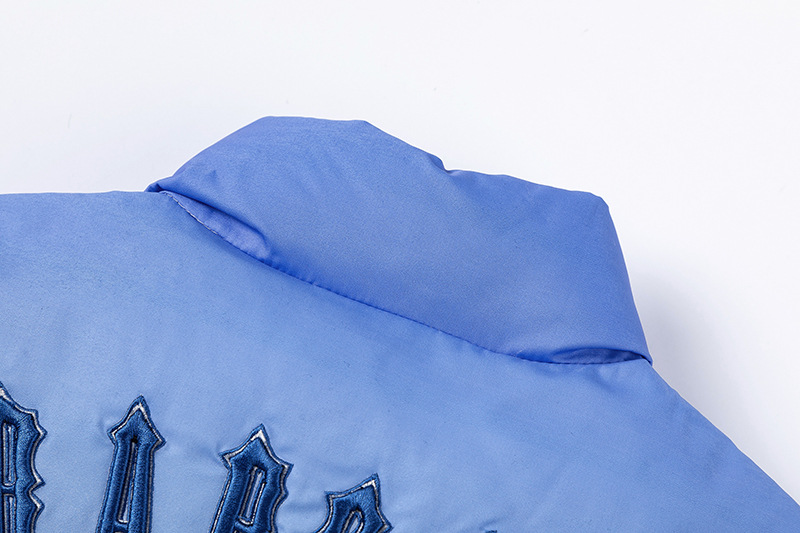 Trap-ESfog 남녀 공용 레트로 스타일 스탠드 칼라 후드 심플 레터링 자수 코튼 패딩 재킷스토어 가기