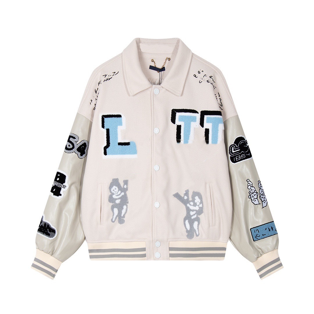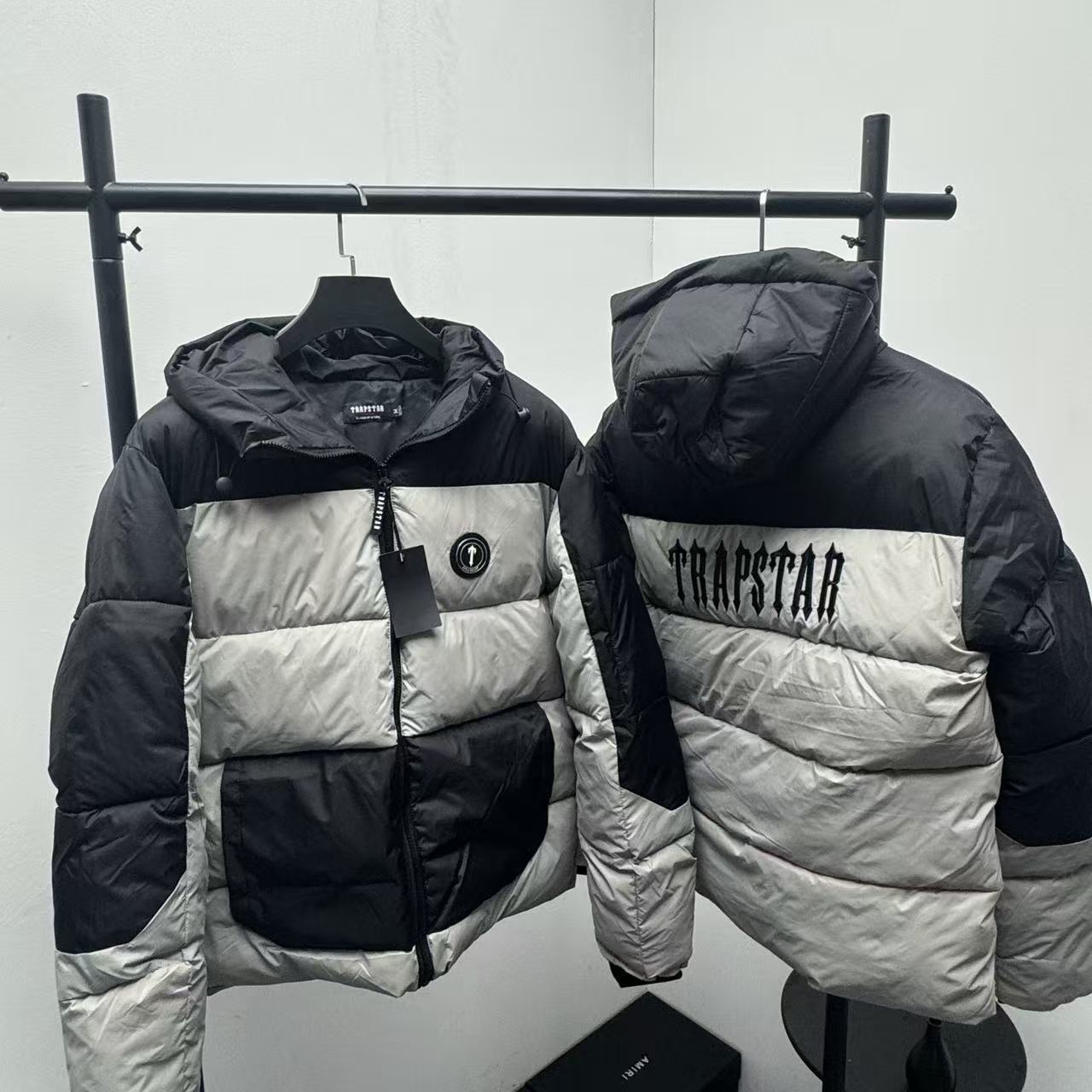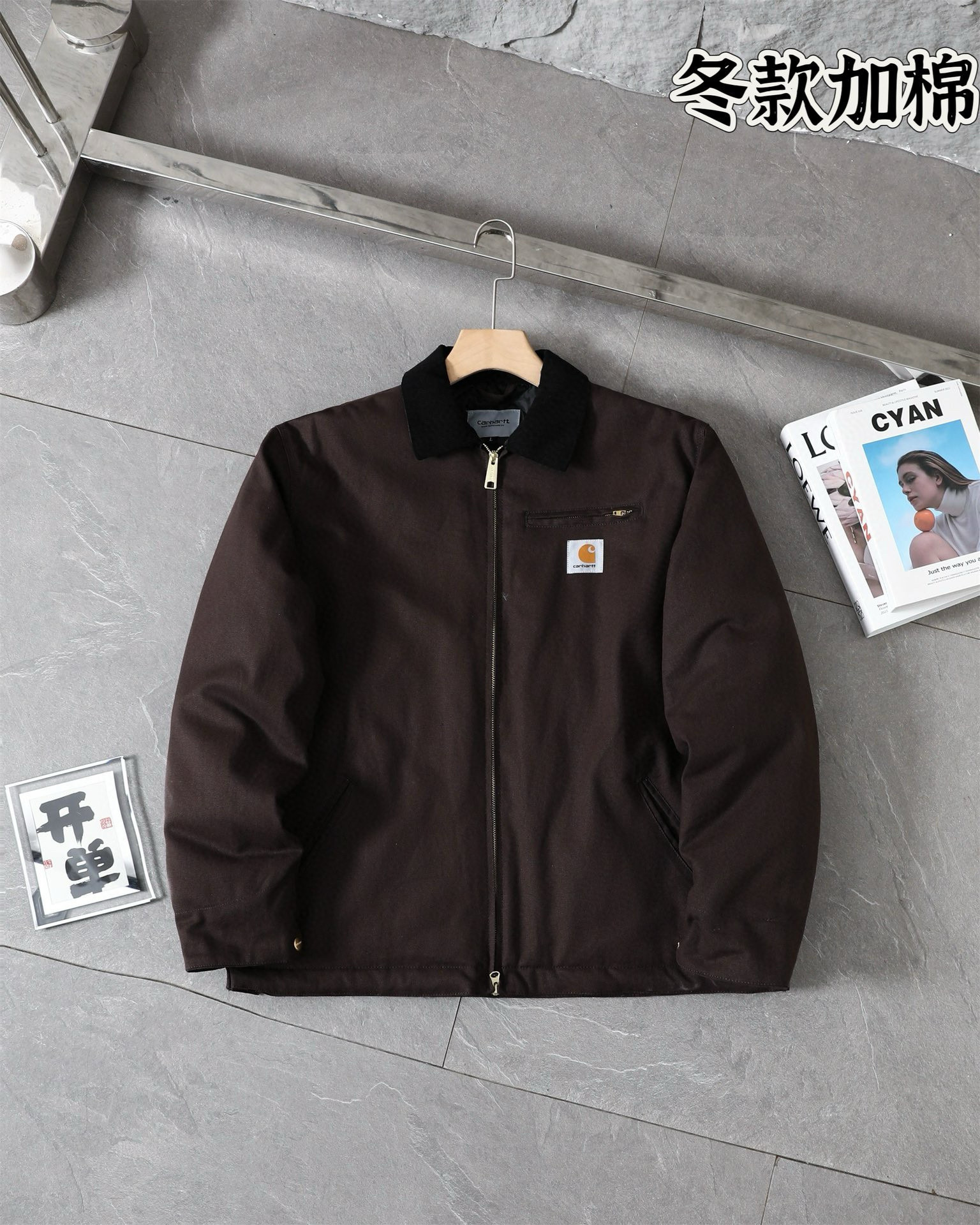 Trap-ESfog 남녀 공용 레트로 스타일 스탠드 칼라 후드 심플 레터링 자수 코튼 패딩 재킷스토어 가기