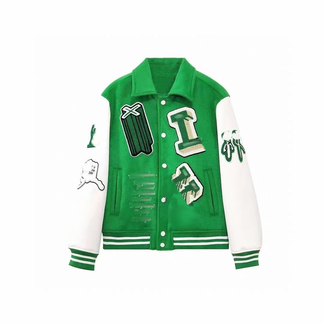 Trap-ESfog 남녀 공용 레트로 스타일 스탠드 칼라 후드 심플 레터링 자수 코튼 패딩 재킷