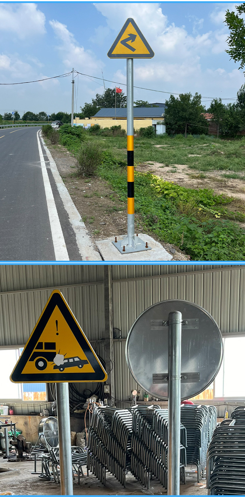 교통 표지판 기둥 아연 도금 강관 교통 극 고속 도로 표지판 기둥 반사 거울 광각 거울 기둥