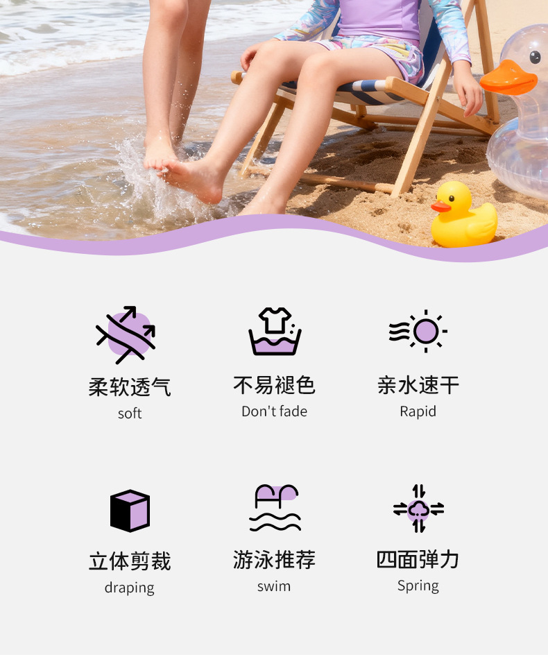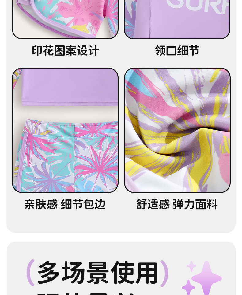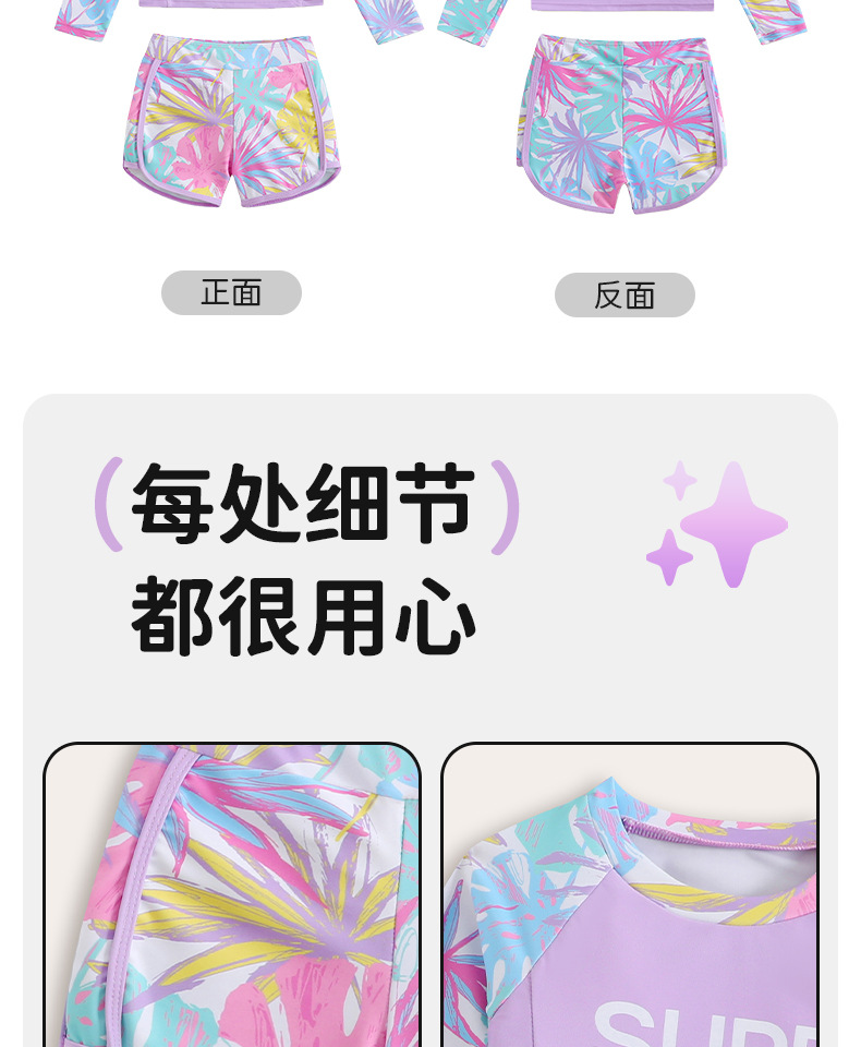 국경 간 어린이 수영복 소녀 귀여운 단풍잎 프린트 긴팔 보수적 자외선 차단제 유럽과 미국의 아마존 스플릿 수영복