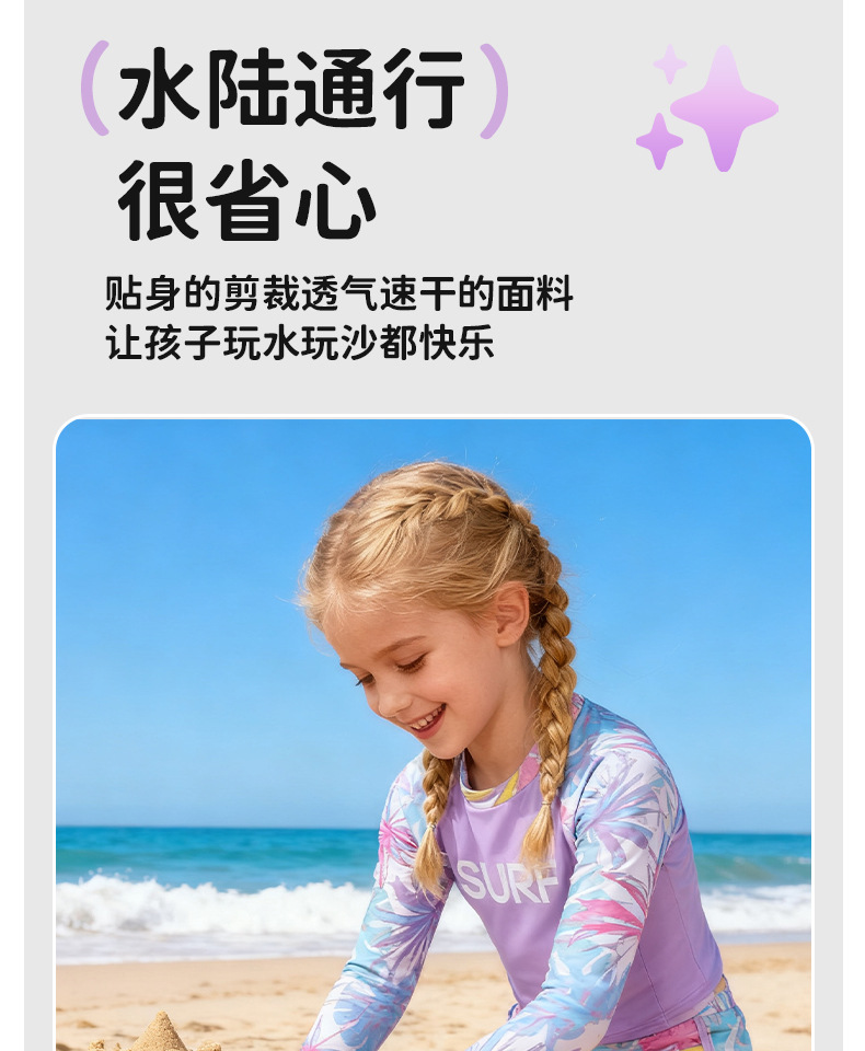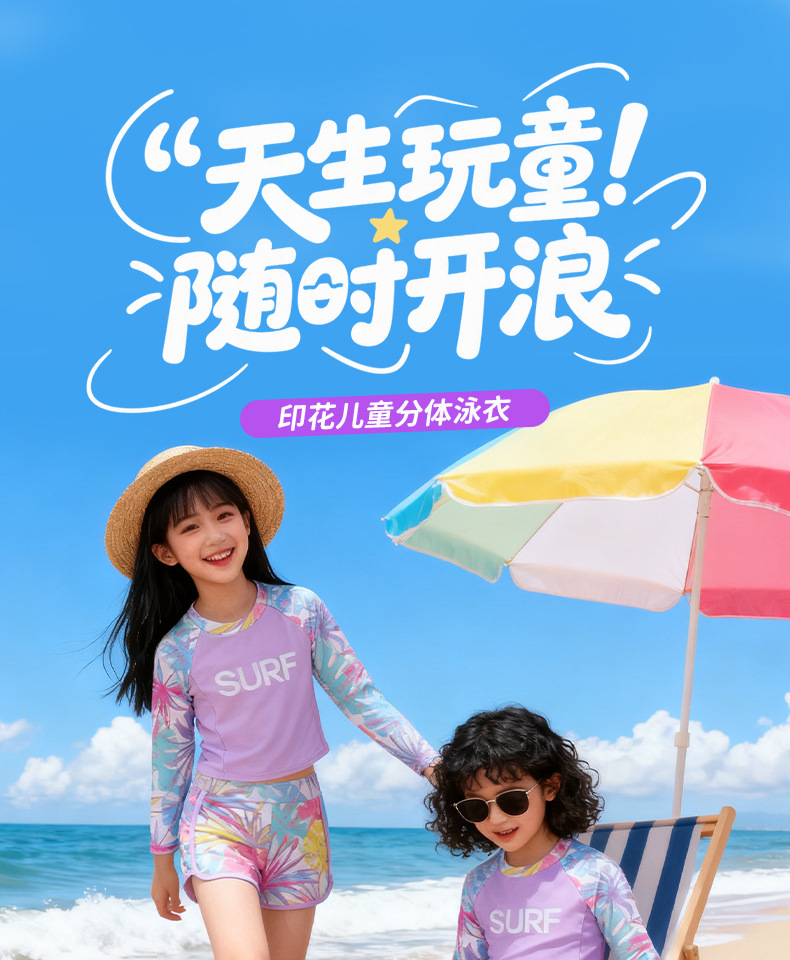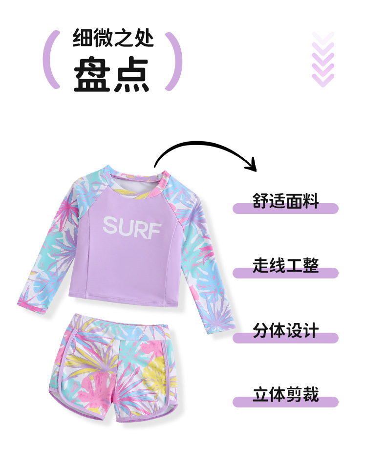 국경 간 어린이 수영복 소녀 귀여운 단풍잎 프린트 긴팔 보수적 자외선 차단제 유럽과 미국의 아마존 스플릿 수영복스토어 가기