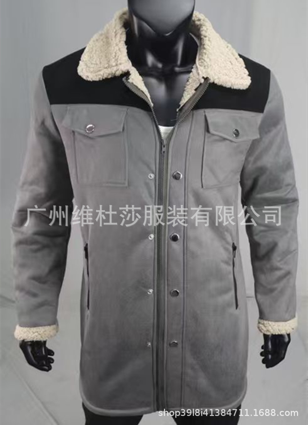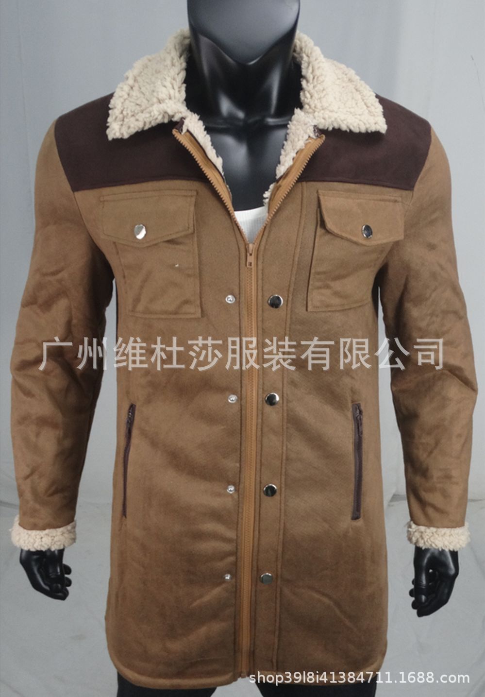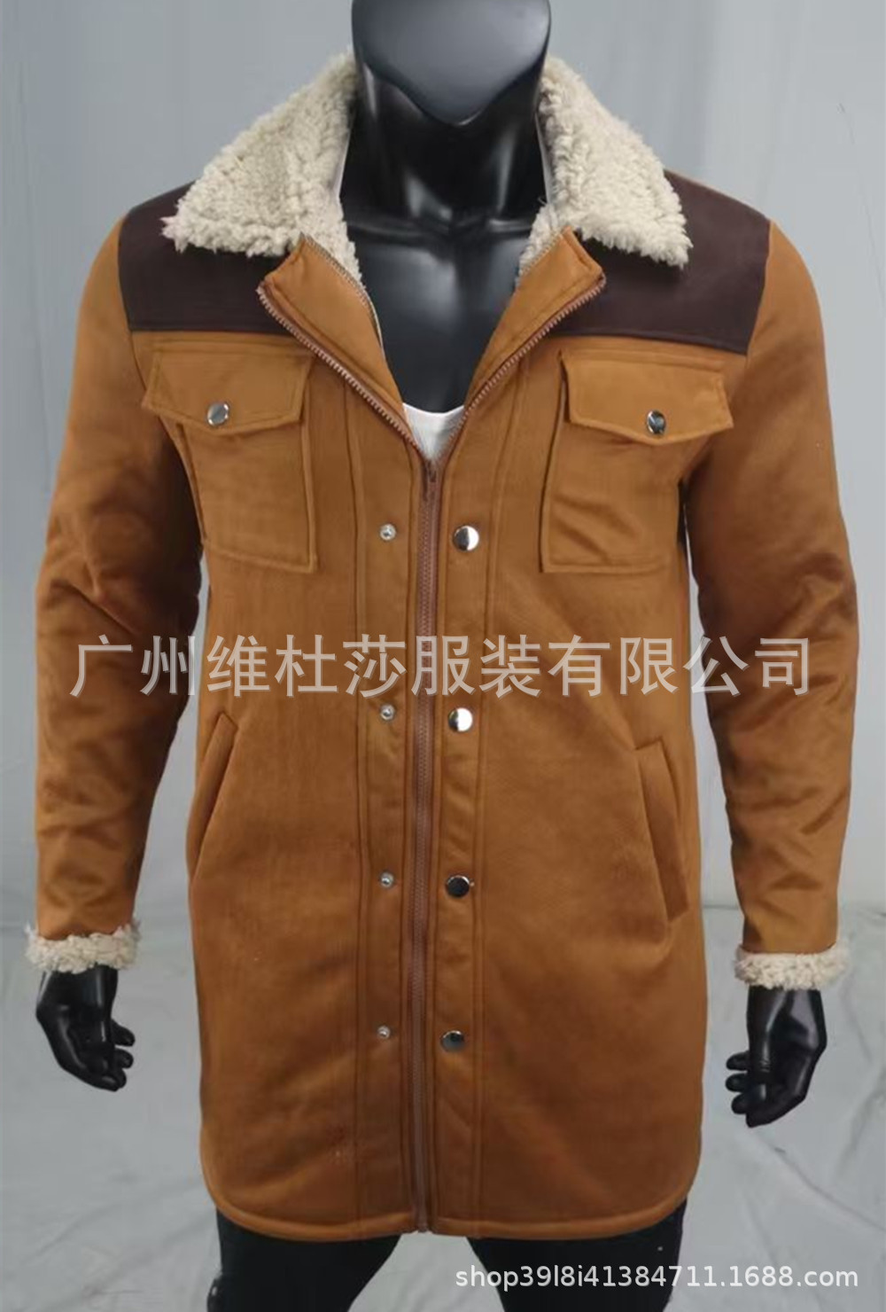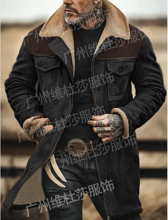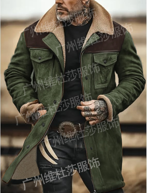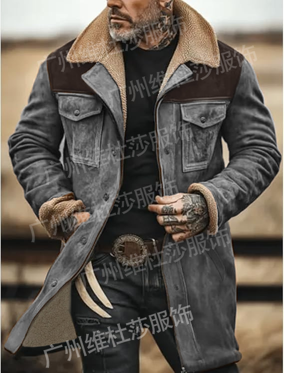 재고 유럽과 미국 2024 가을과 겨울 남성 코트 크로스 보더 스웨이드 컬러 블록 재킷 아마존 멀티 포켓 지퍼 코트스토어 가기