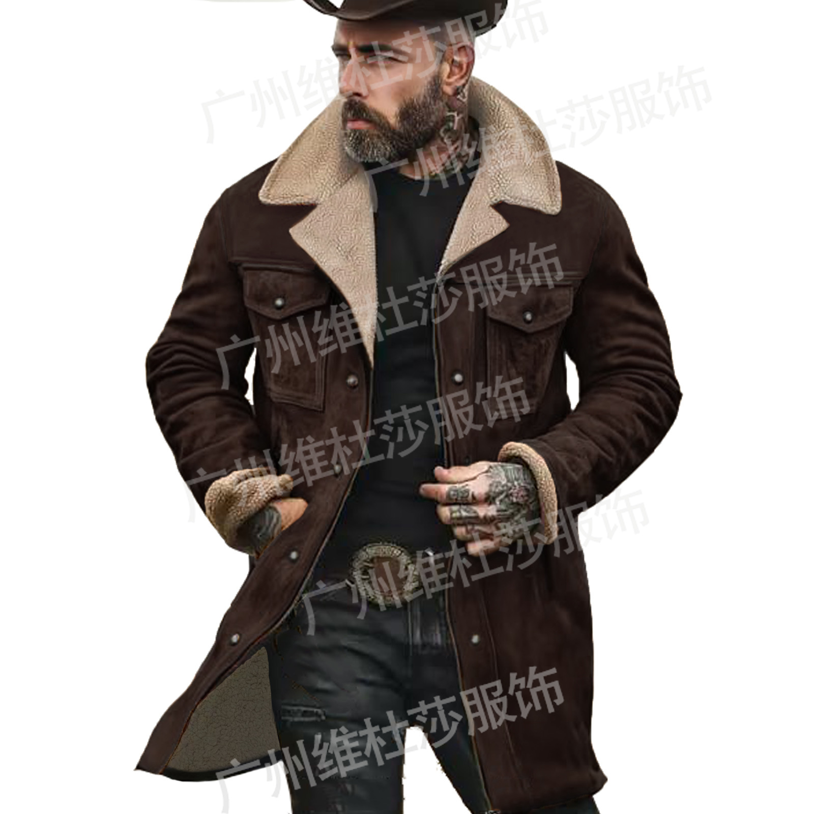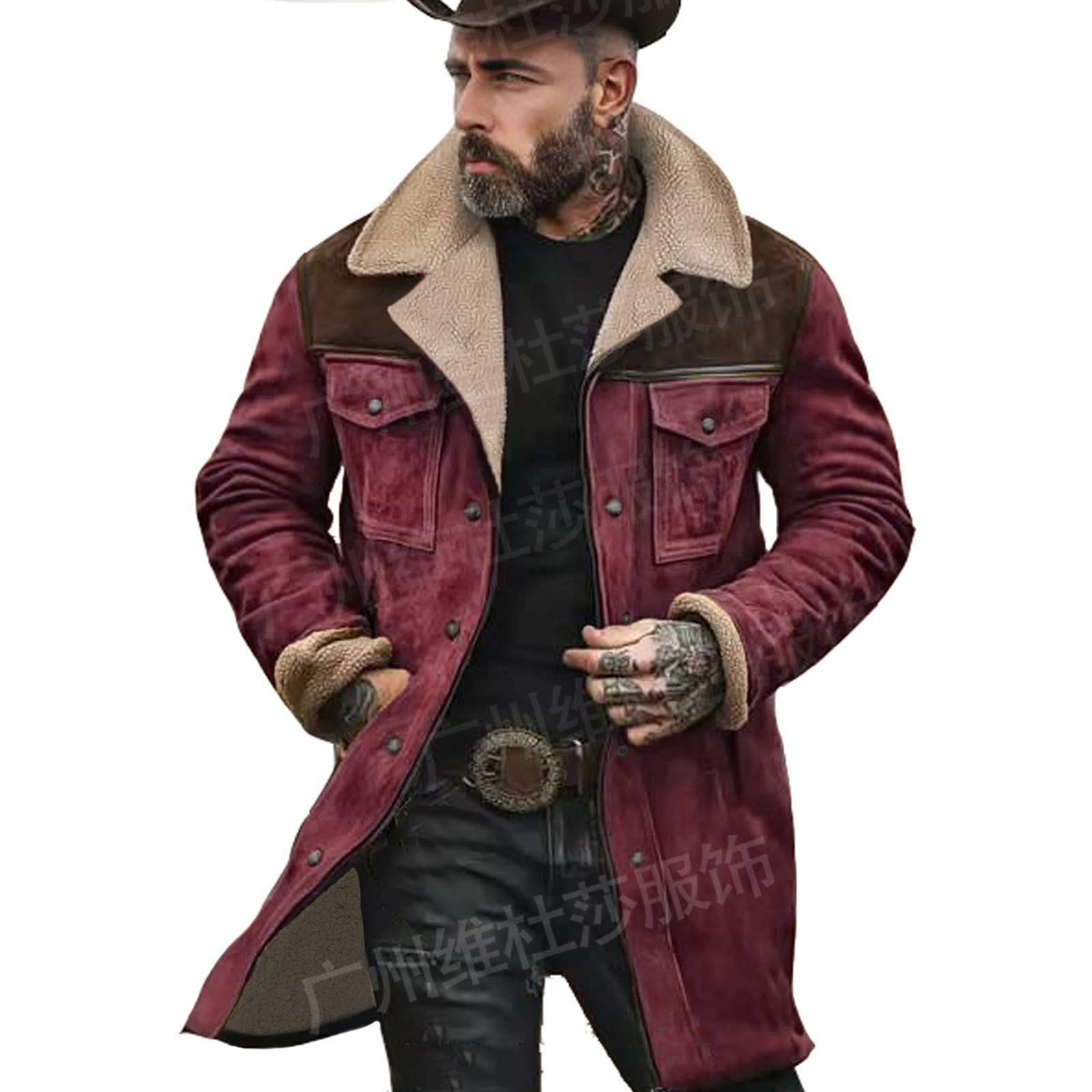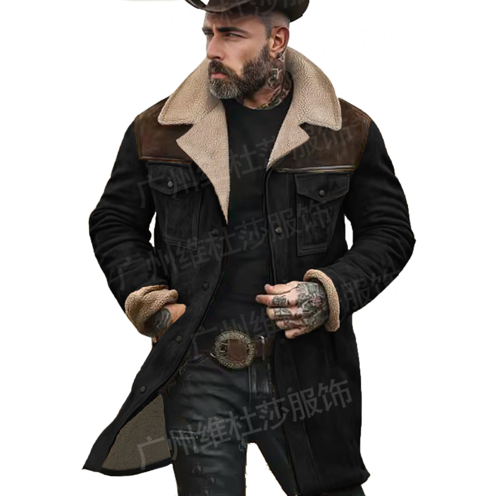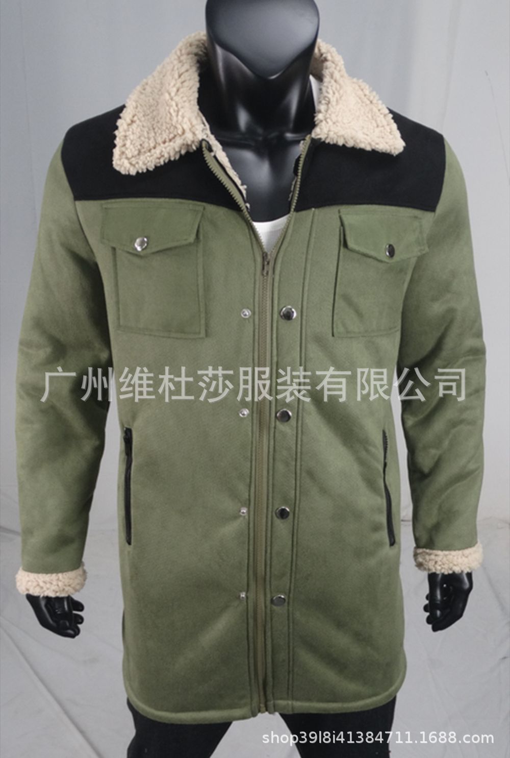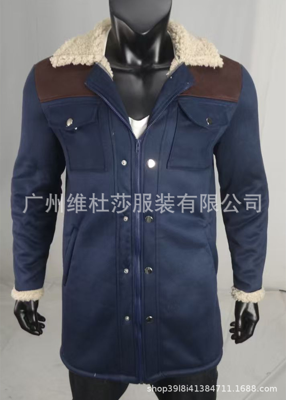재고 유럽과 미국 2024 가을과 겨울 남성 코트 크로스 보더 스웨이드 컬러 블록 재킷 아마존 멀티 포켓 지퍼 코트스토어 가기