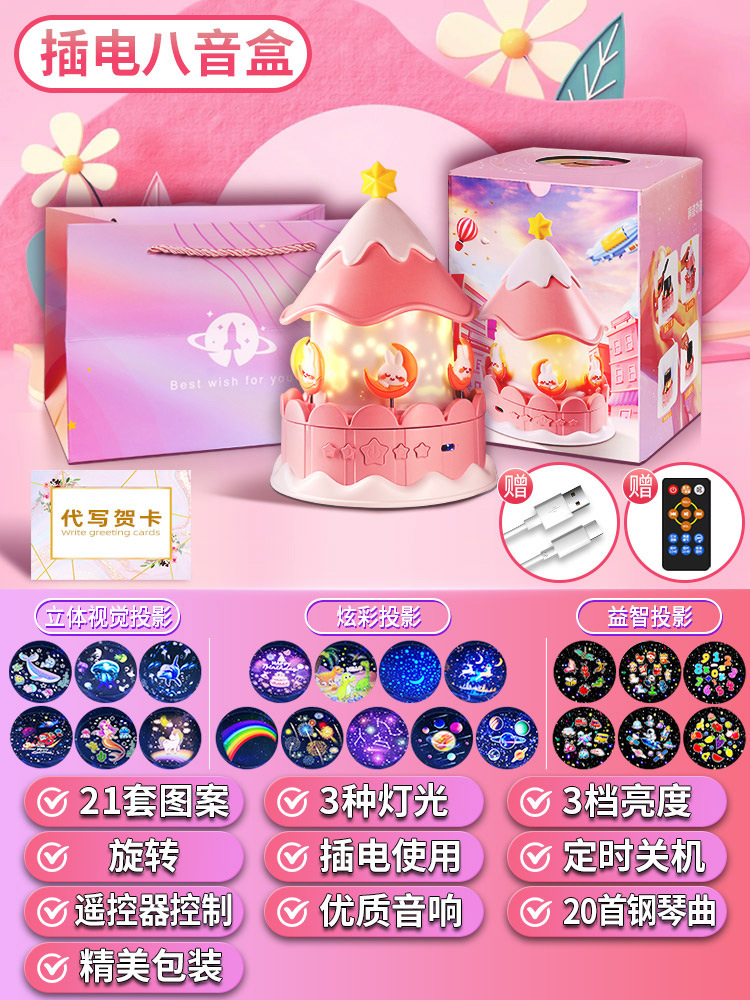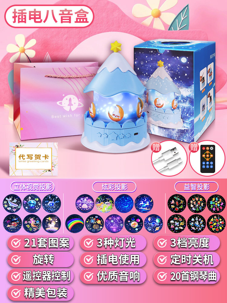 • 드림캐슬 [오르골-필름 21세트] 충전식 및 플러그인 가능 + 블루 + 음악 20곡 + 정교한 포장♜